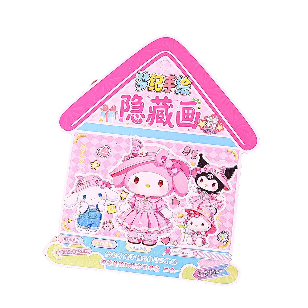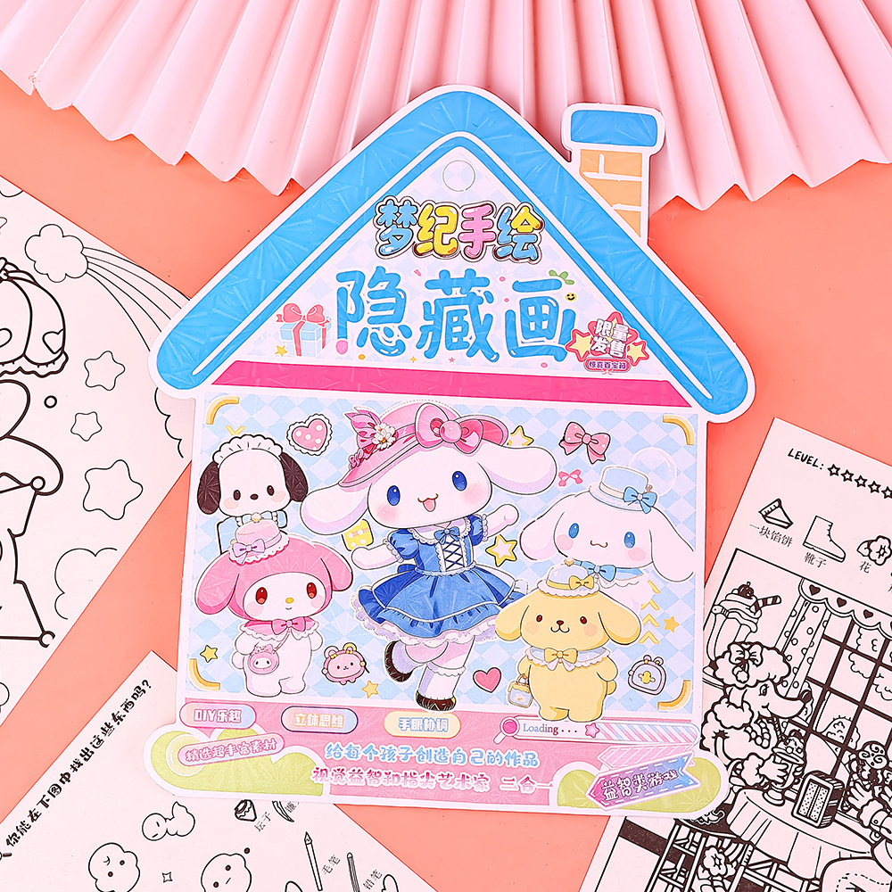 寻宝摸鱼线稿涂色画儿童手工DIY填色画 创意贴纸手账素材现货批发