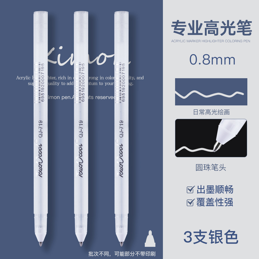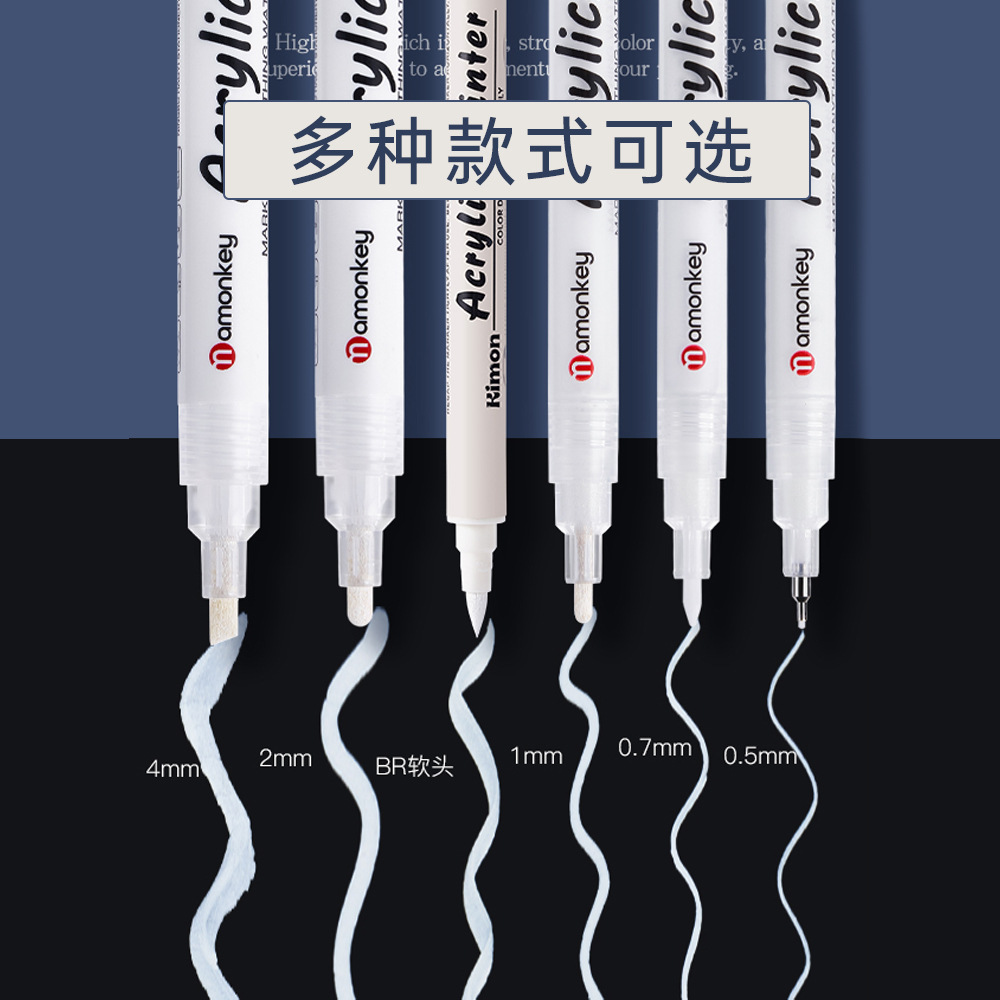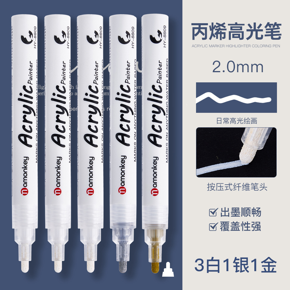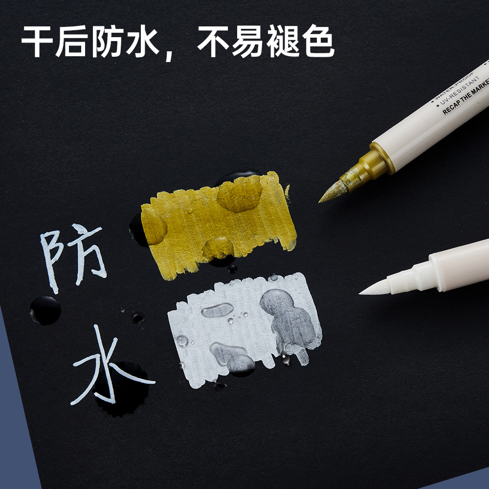 白色丙烯高光笔双头美术白笔防水高光白线细笔黑纸涂鸦白漆记号笔