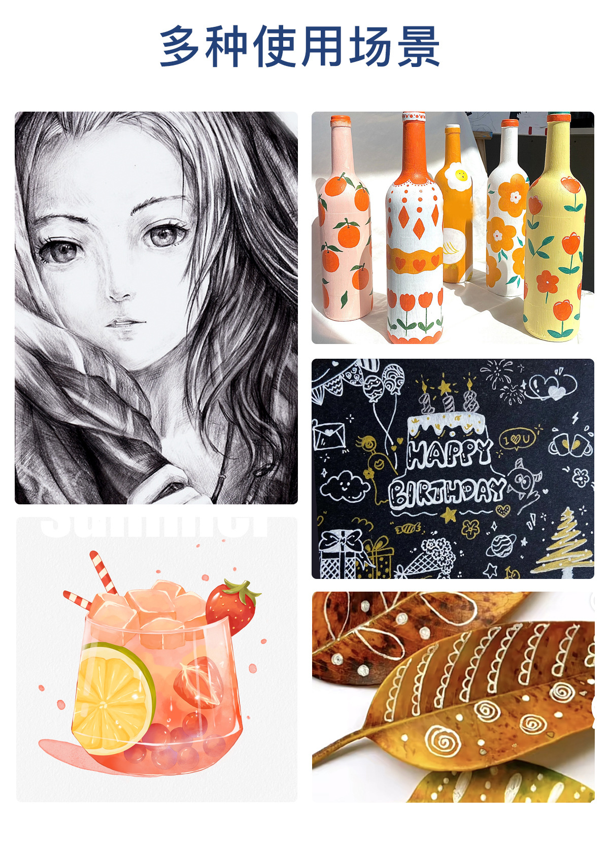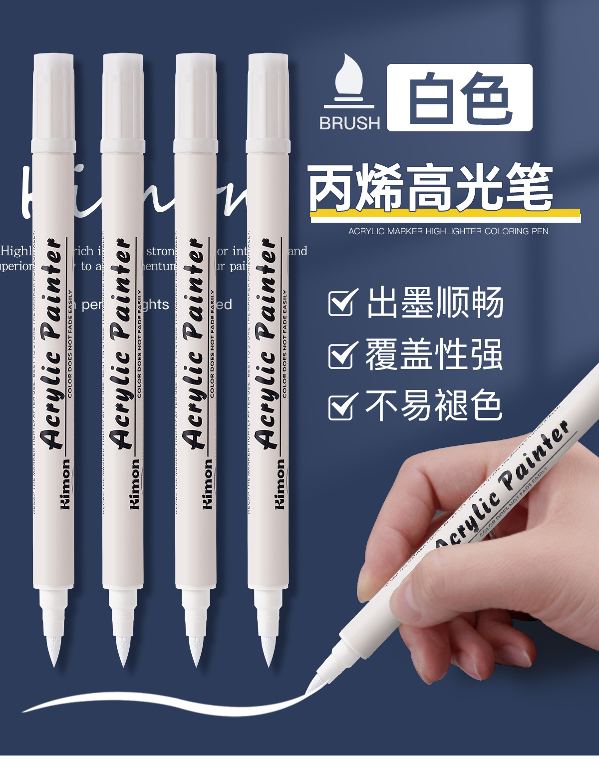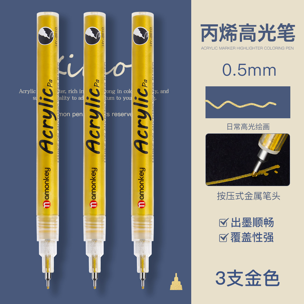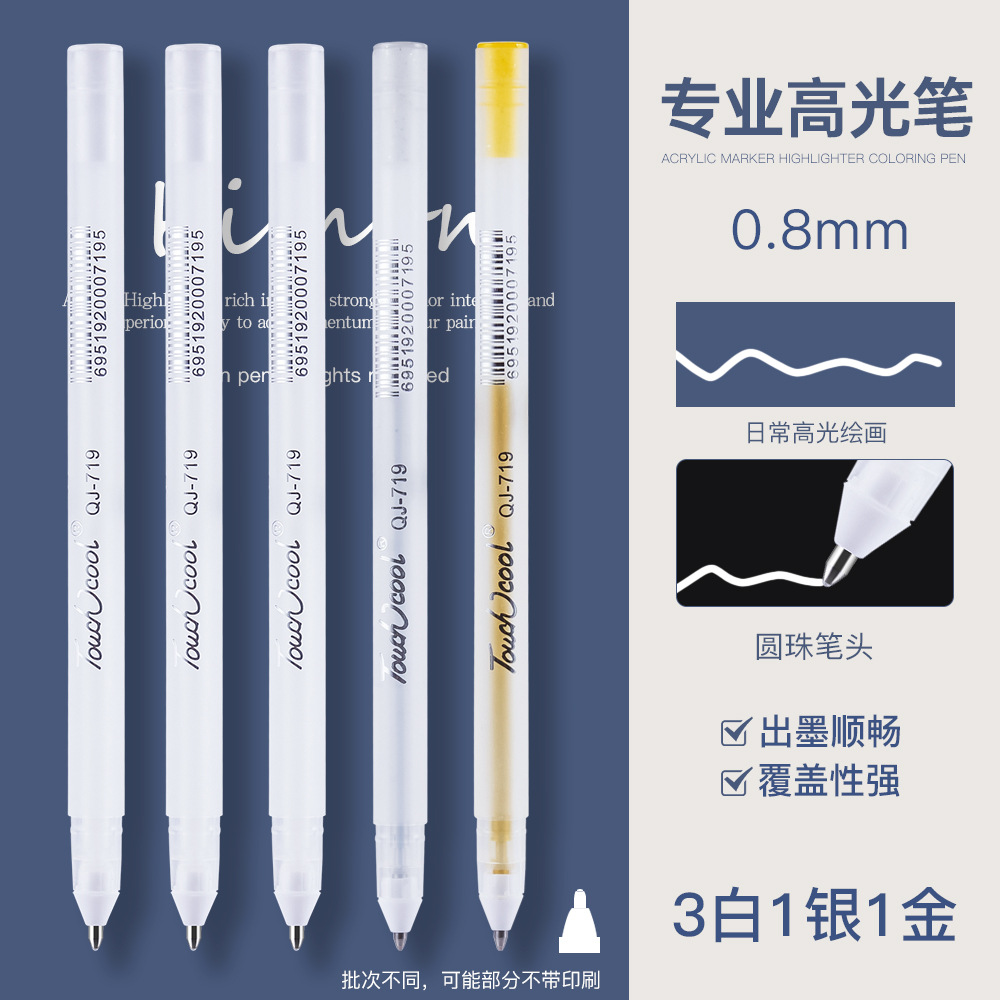 白色丙烯高光笔双头美术白笔防水高光白线细笔黑纸涂鸦白漆记号笔