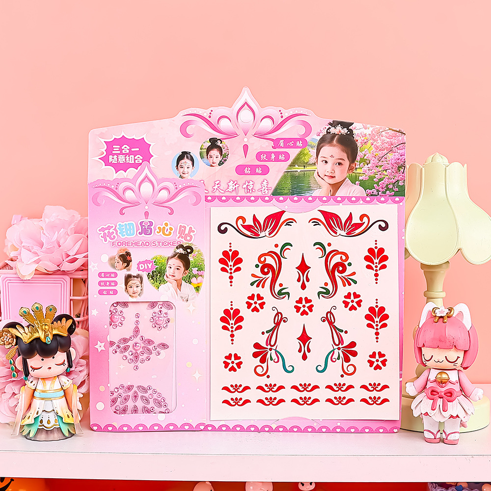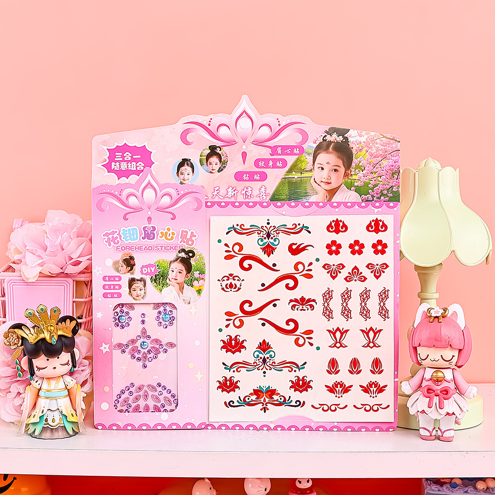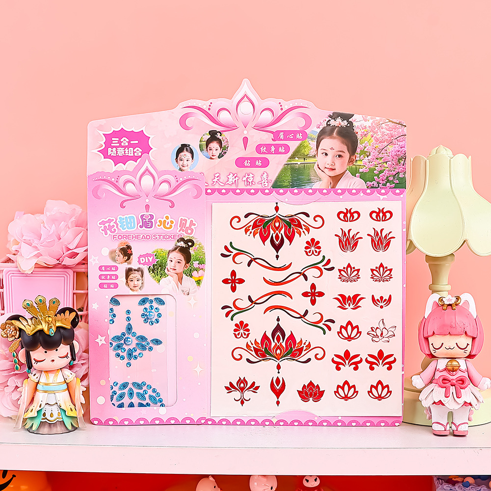 国潮花钿眉心贴汉服妆造额头贴纸儿童舞台表演防水贴画多款式可选