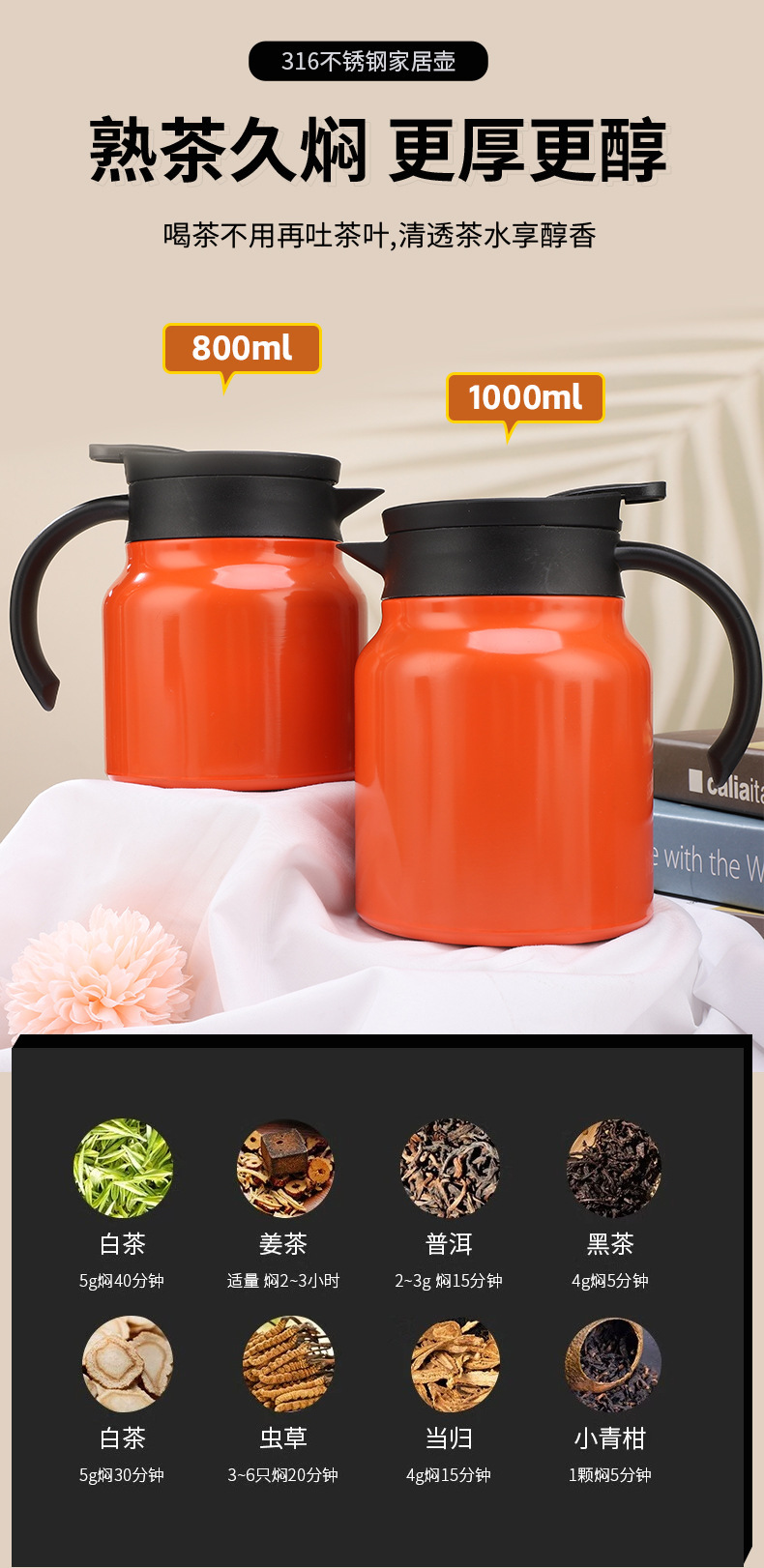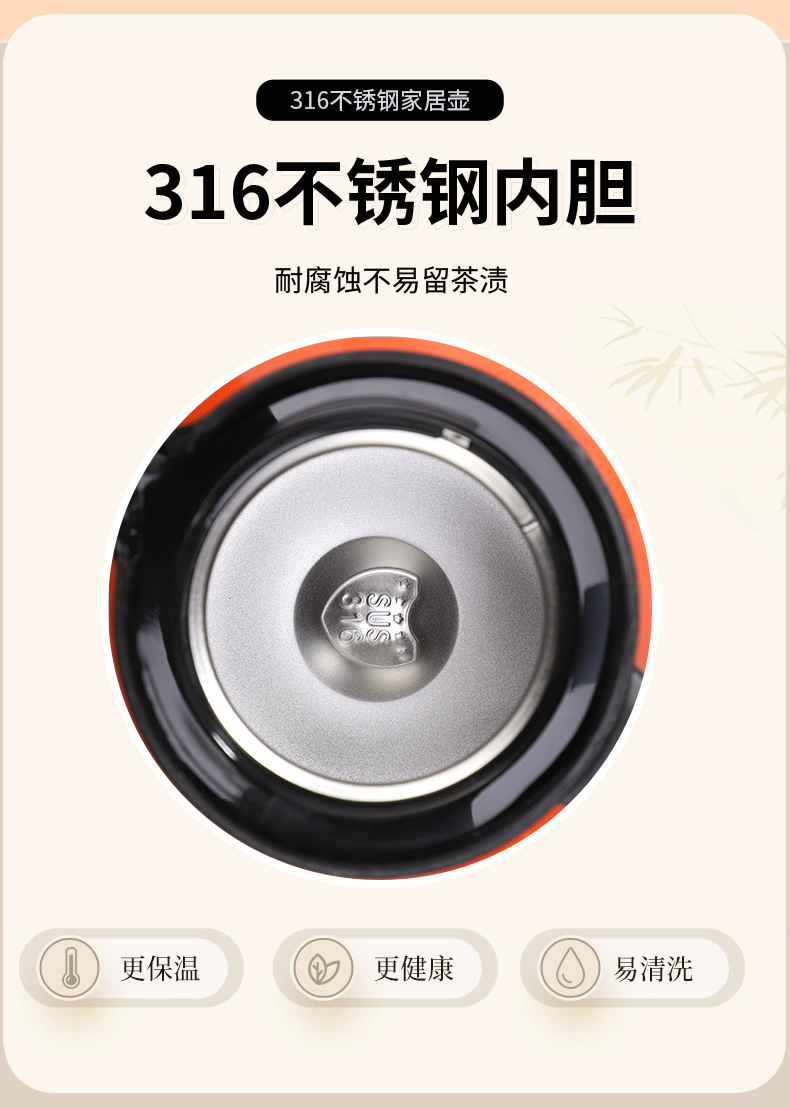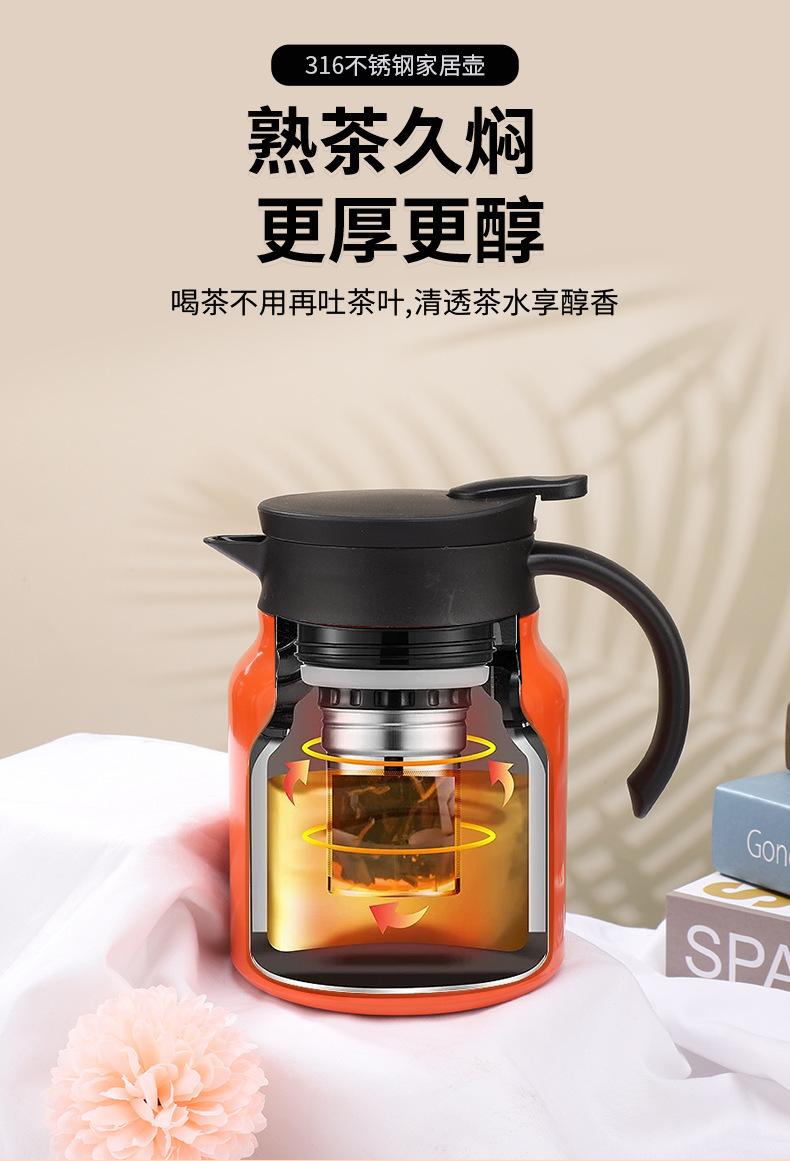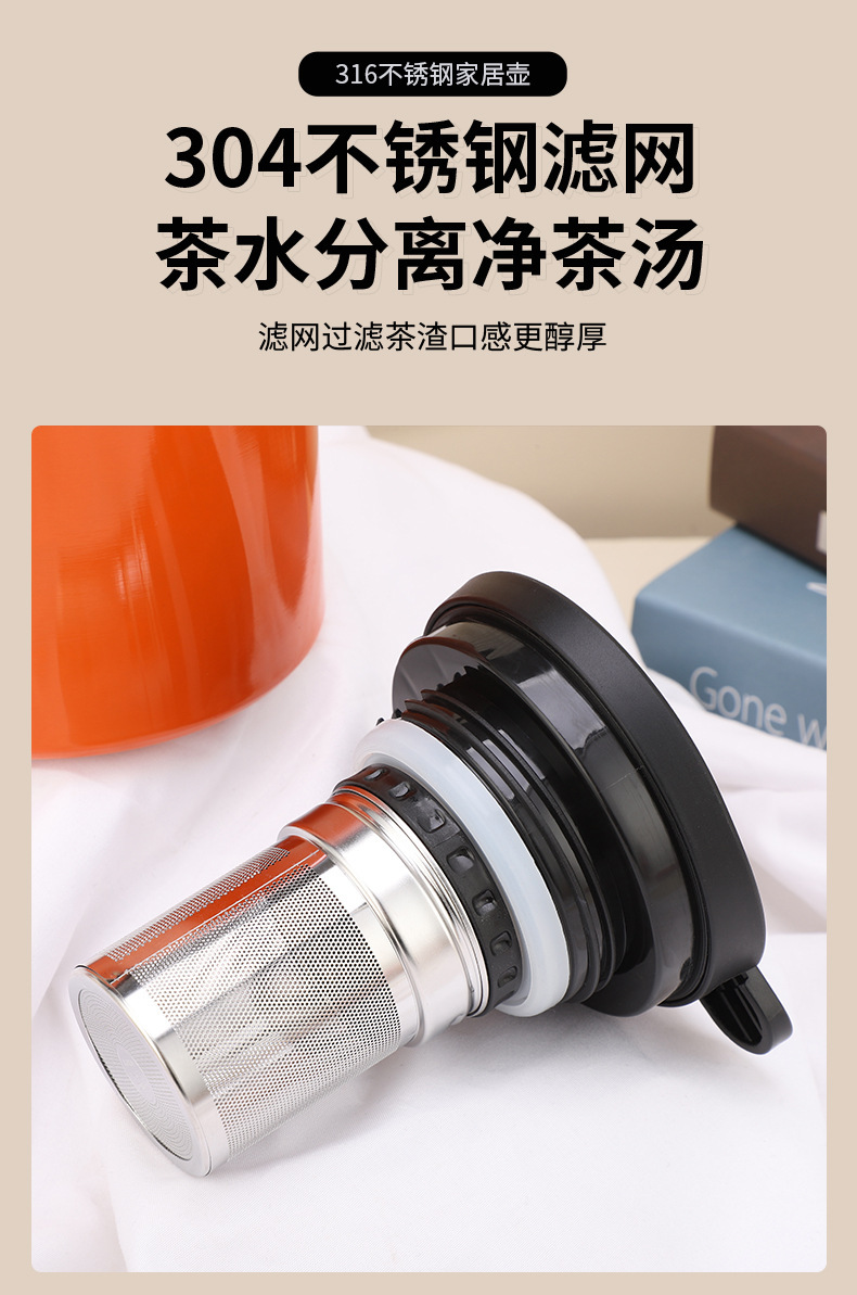 新款316不锈钢大容量保温水壶大口径手柄茶漏焖茶壶家用保温水瓶