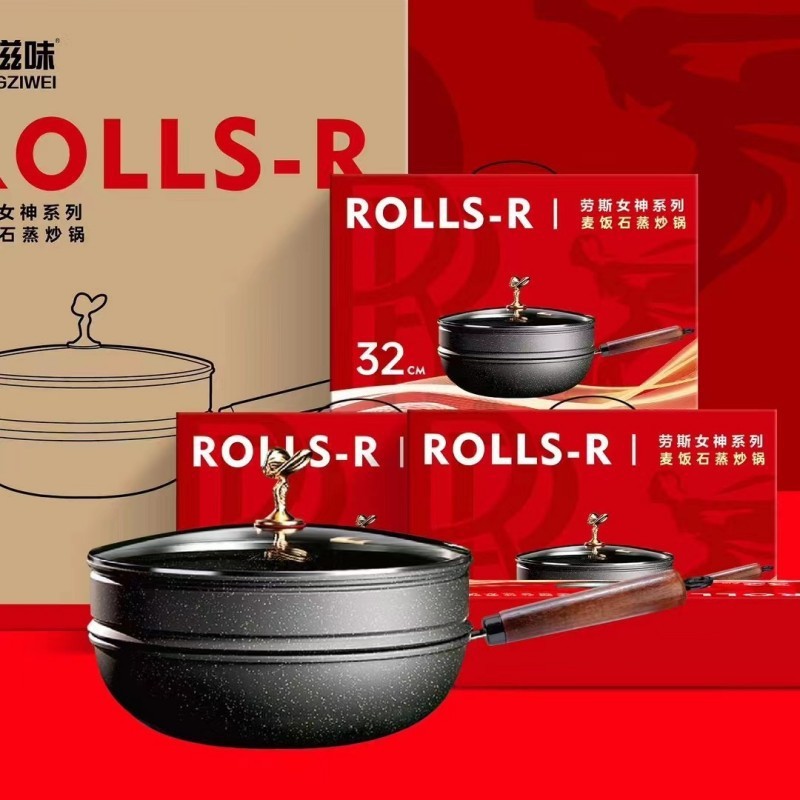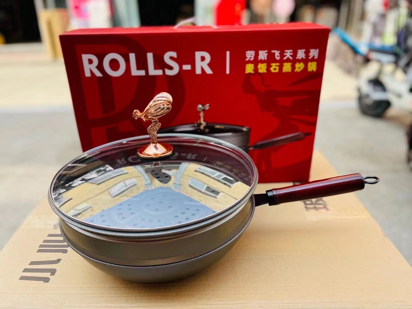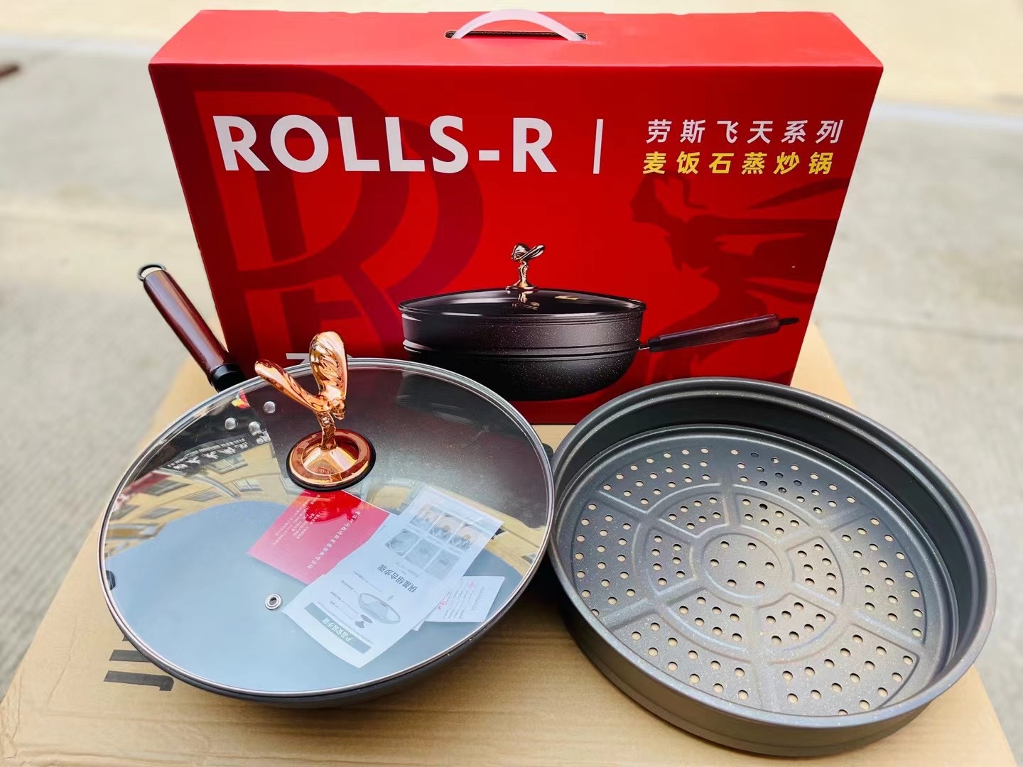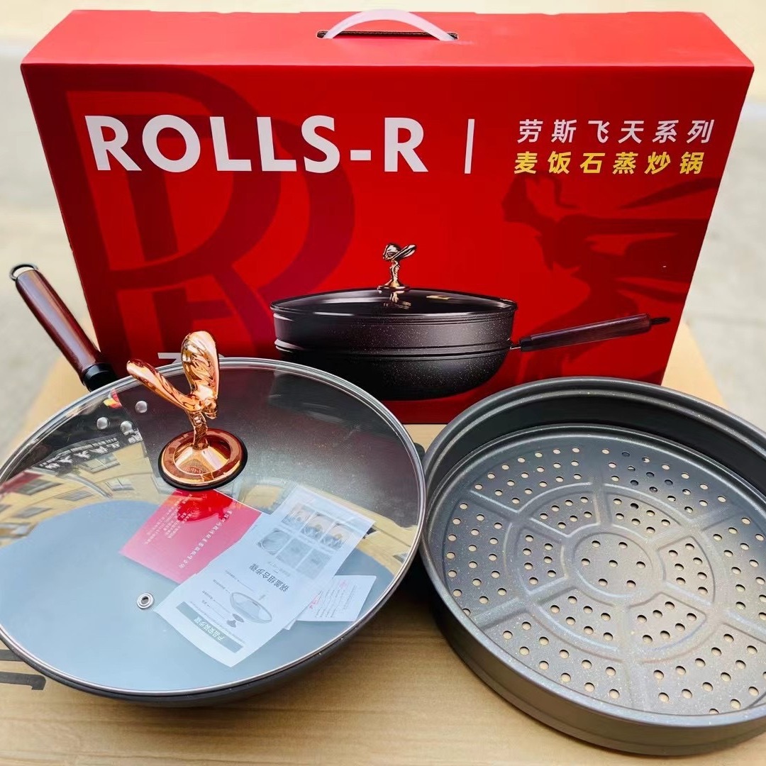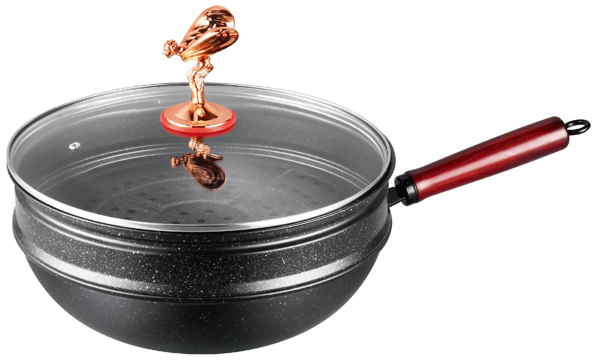 新款麦饭石不粘炒锅飞天女神锅带蒸笼家用多功能炒菜锅通用礼品