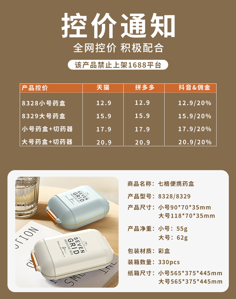 定制药盒一周七天切药器药品药丸药片分药器收纳双层七格跨境批发