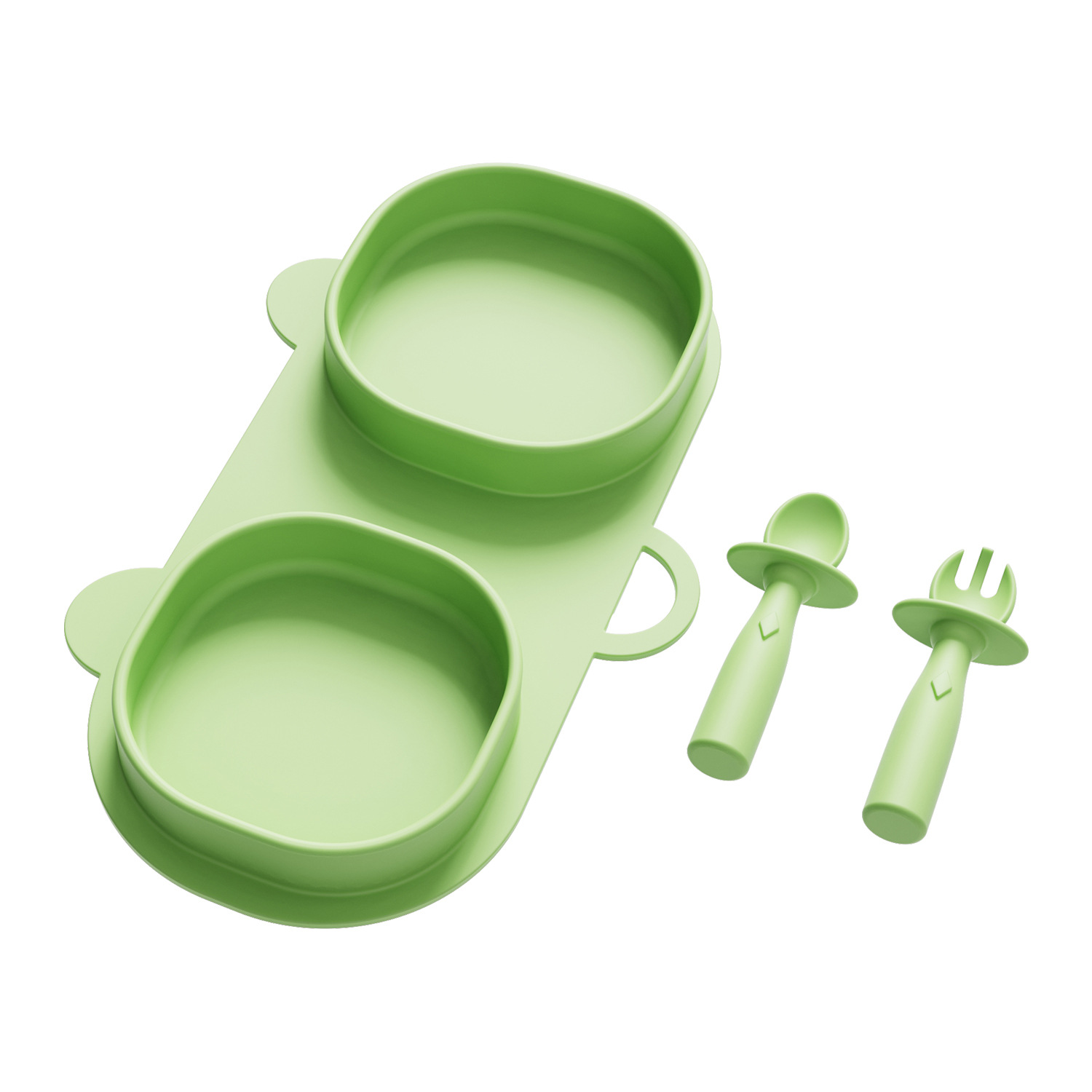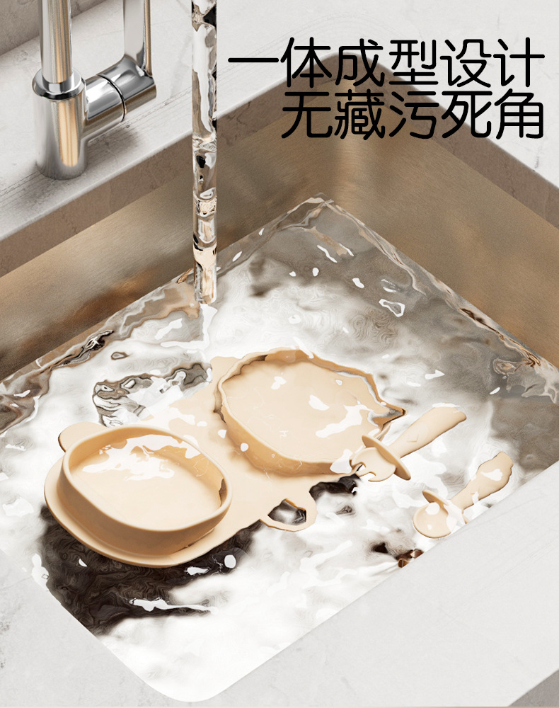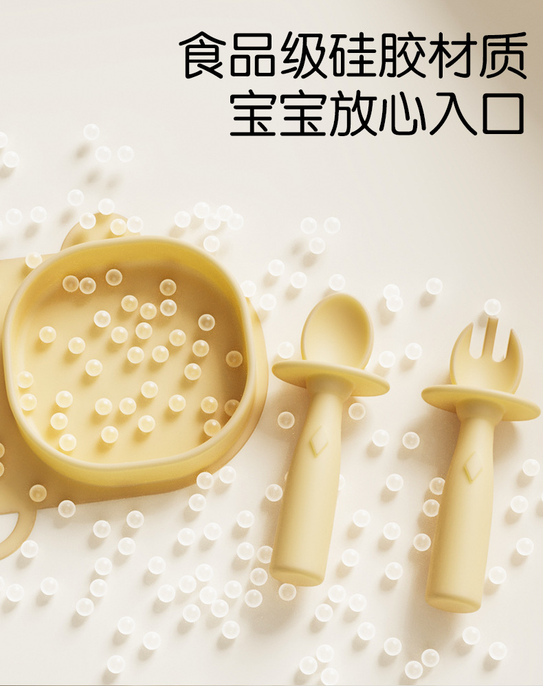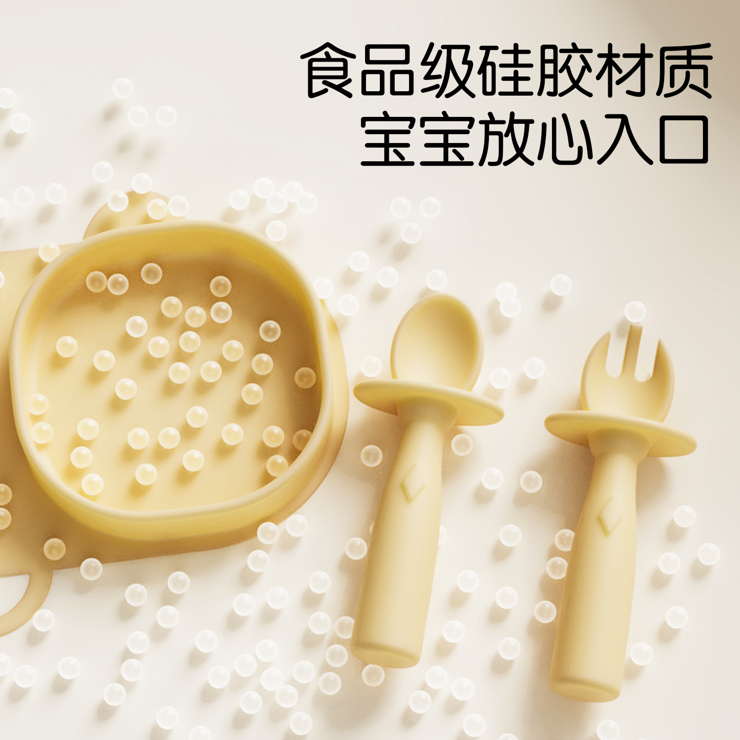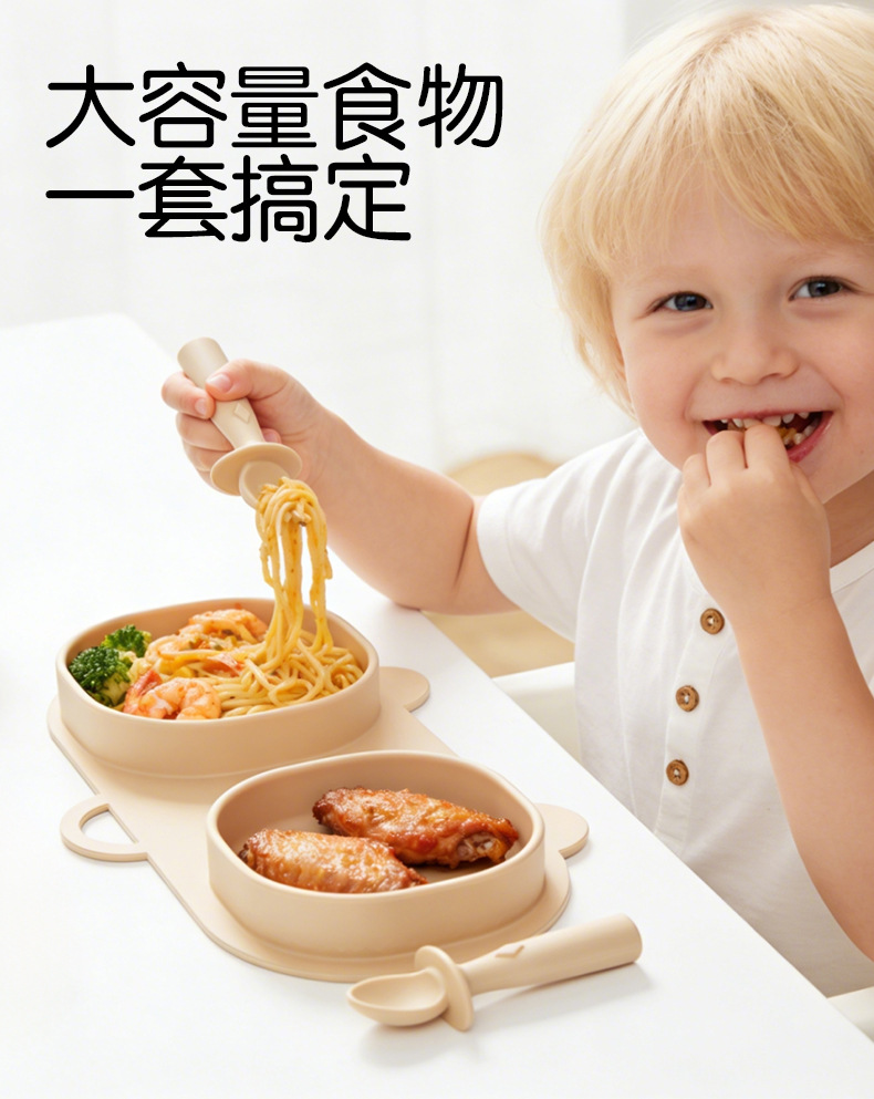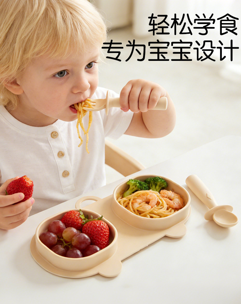 新品分格儿童餐具套装婴儿硅胶辅食碗便携可折叠叉勺动物卡通餐盘