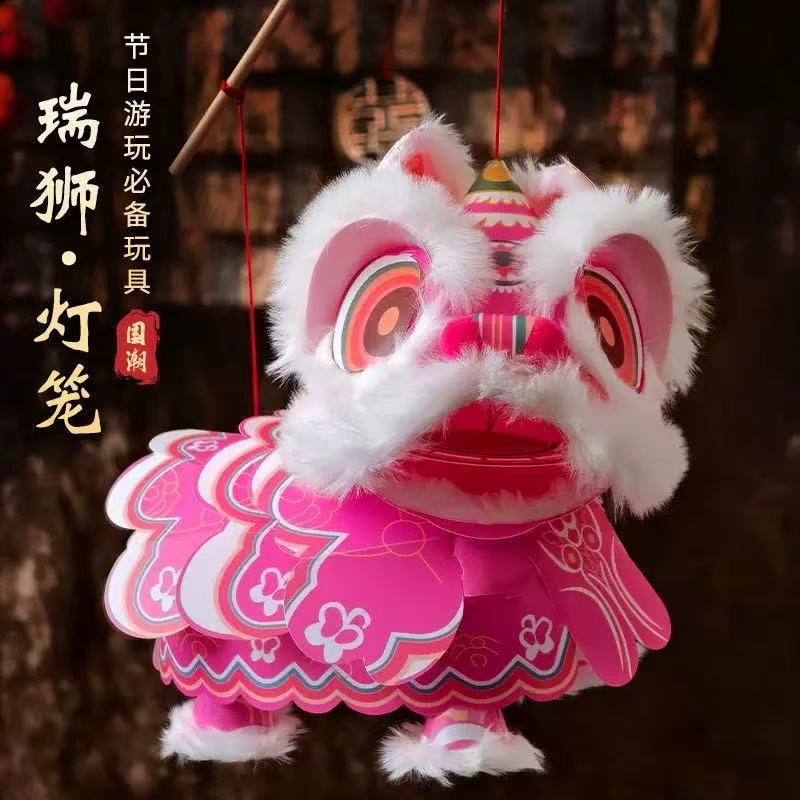2026马年新款醒狮灯笼手工diy材料包儿童手提发光玩具pvc防水材质