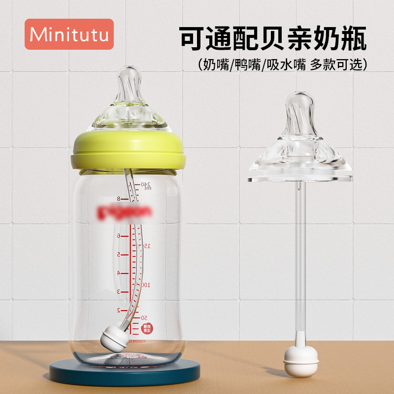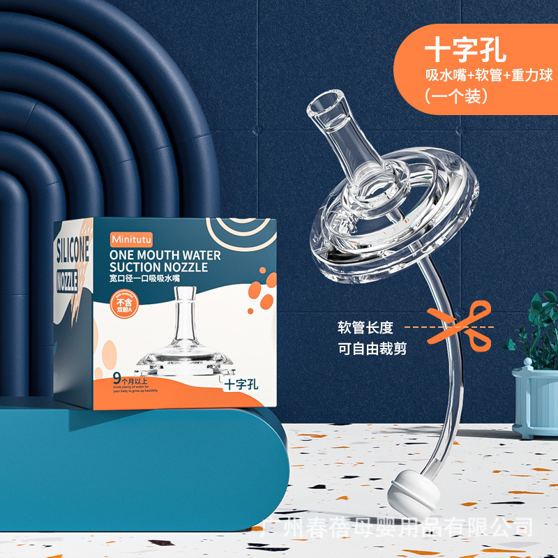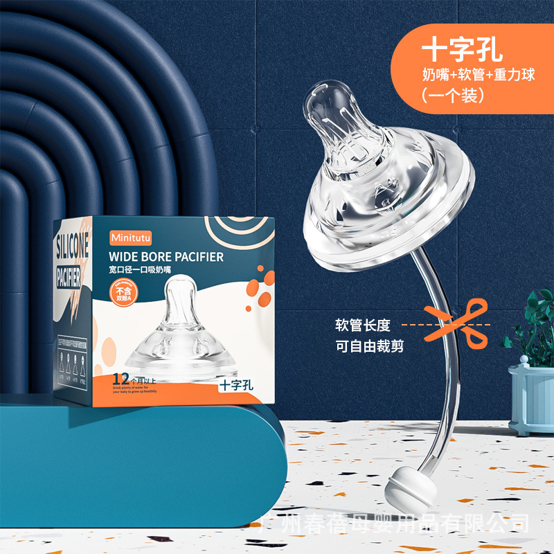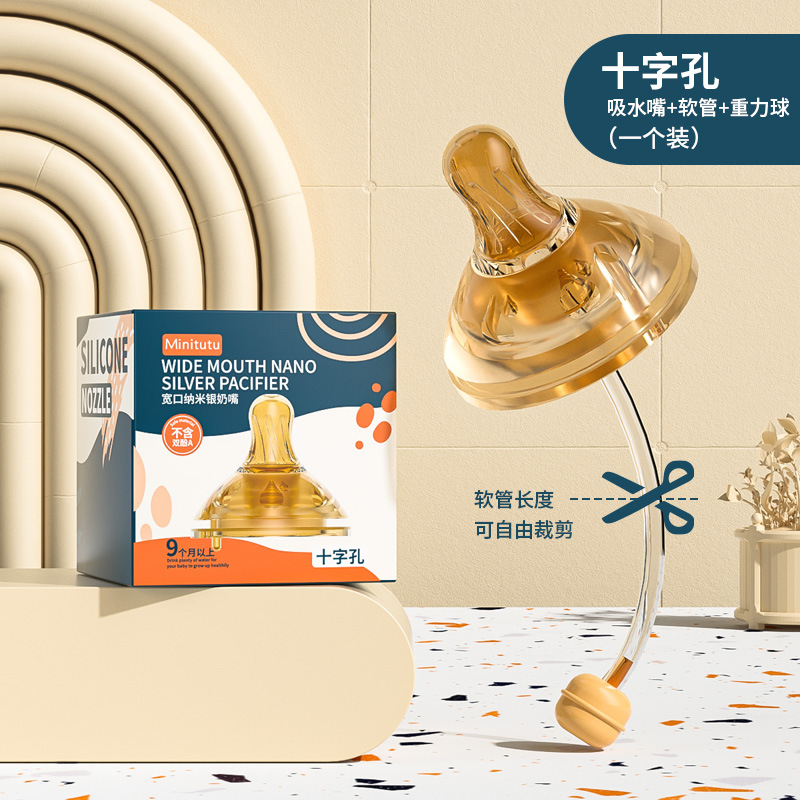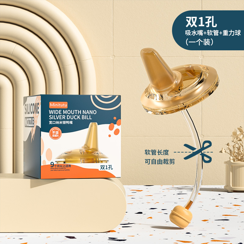 Minitutu 宽口硅胶奶嘴鸭嘴吸水嘴通配宽口径奶瓶5CM口径喝水