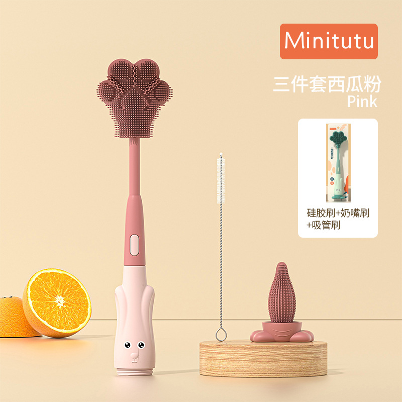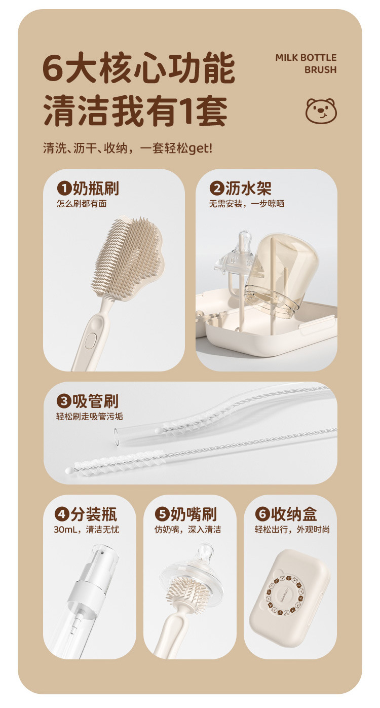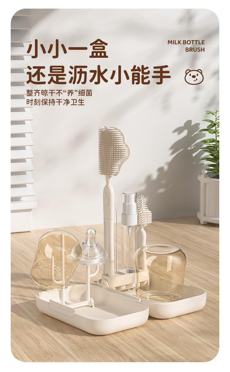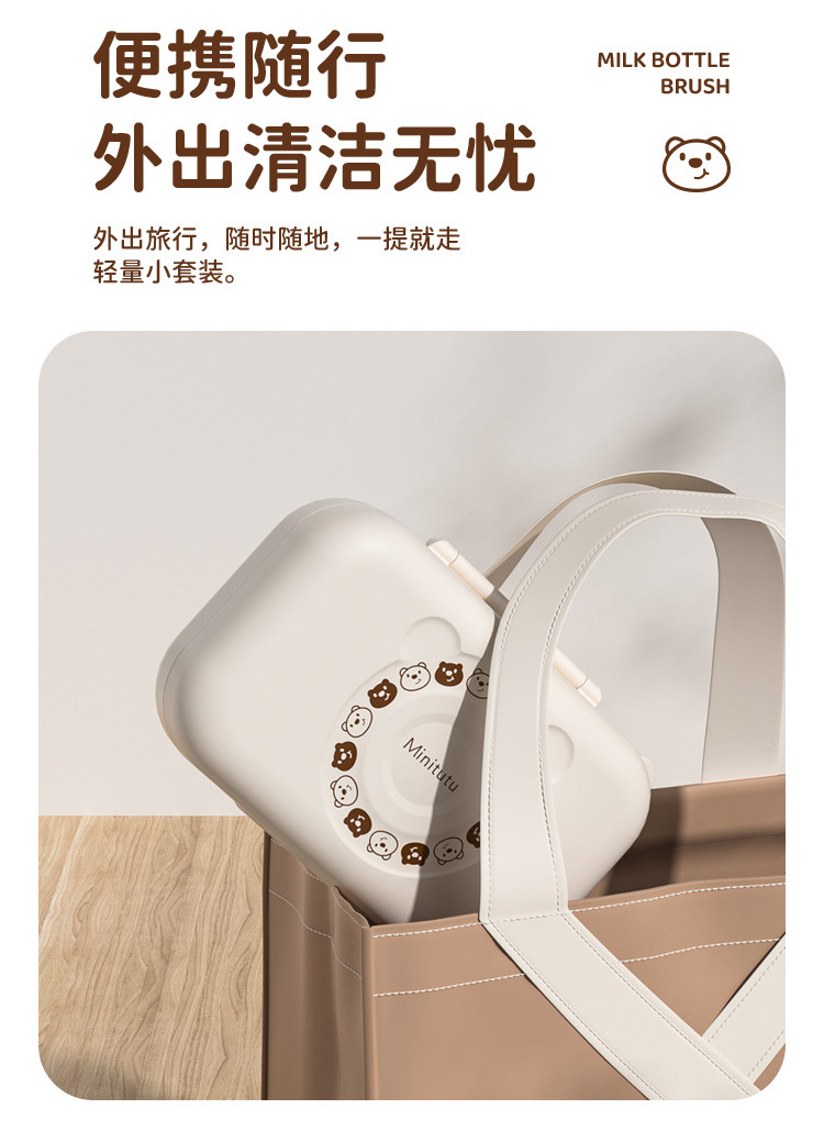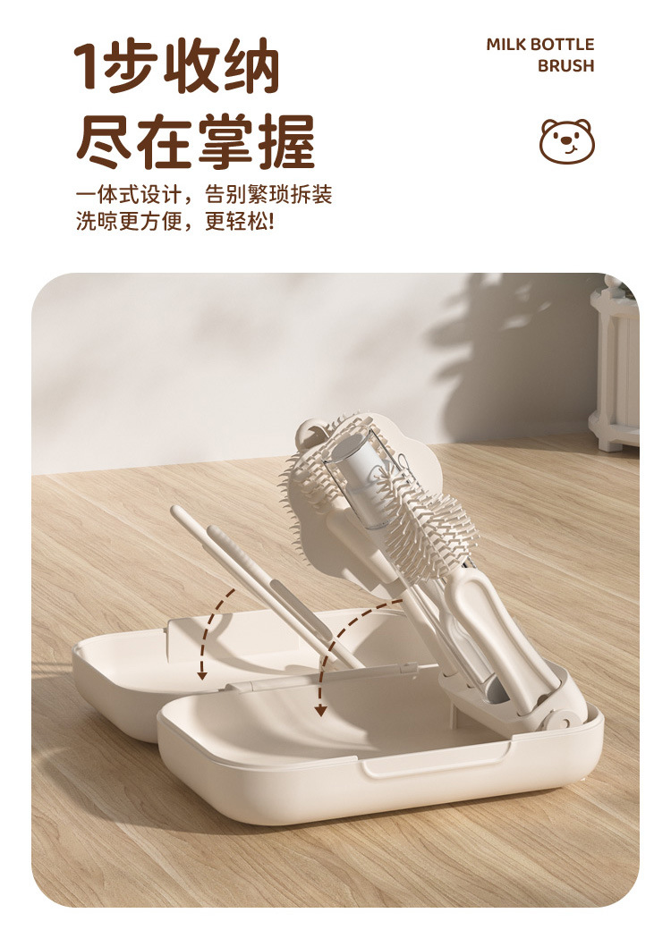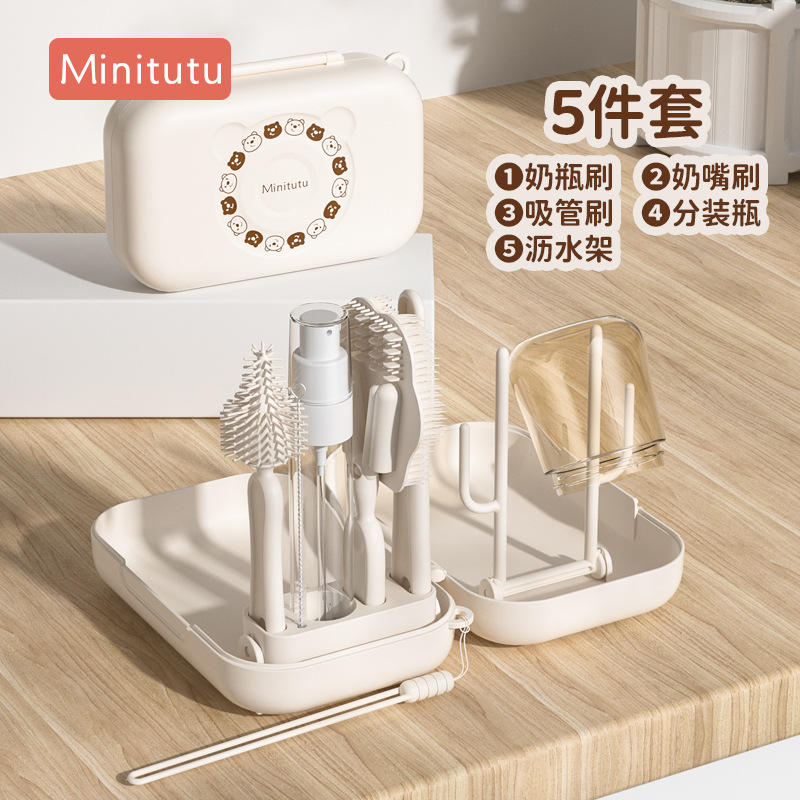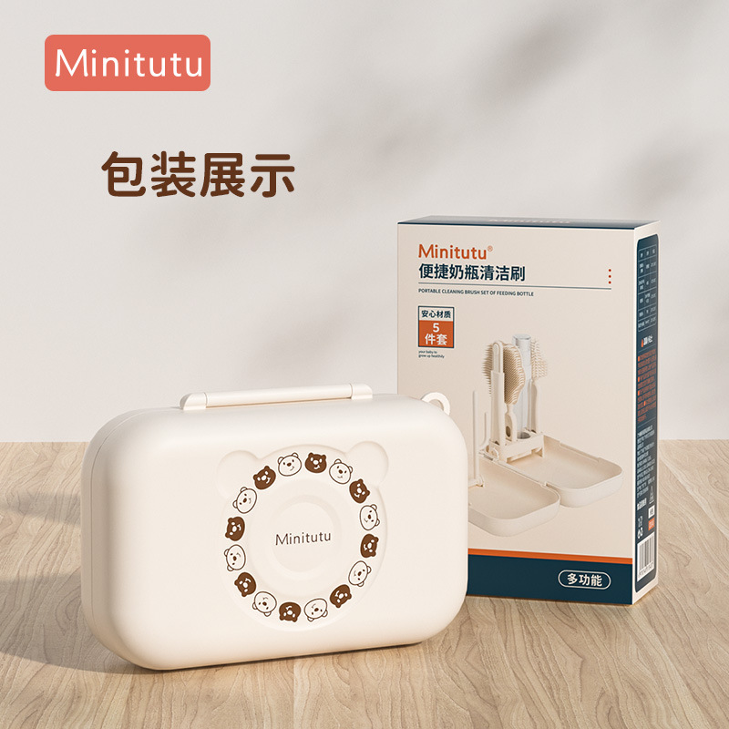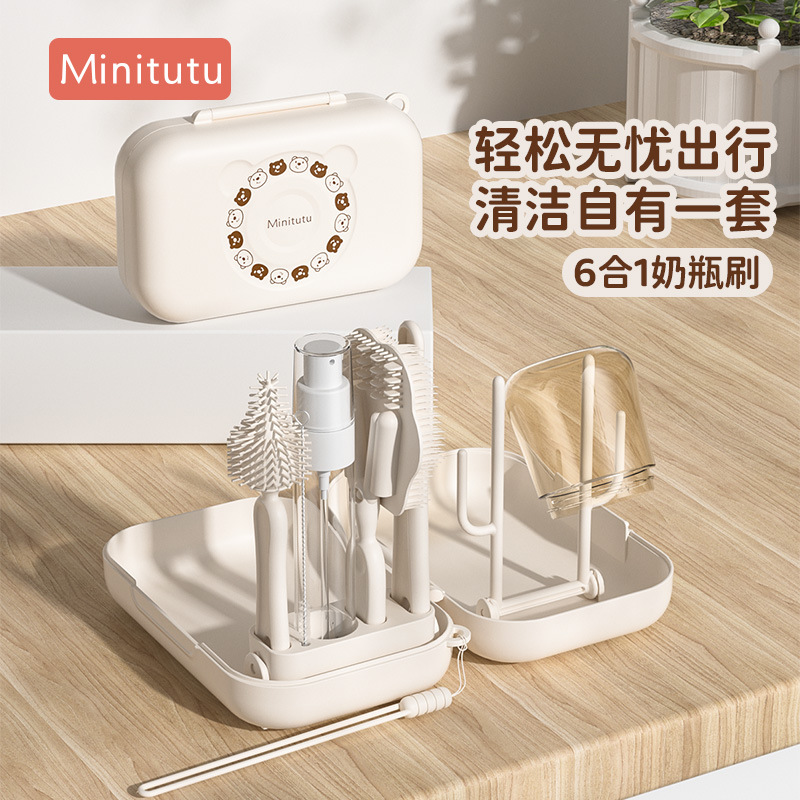 Minitutu便携奶瓶刷套装硅胶奶瓶清洗刷收纳盒旅行装婴儿奶瓶专用