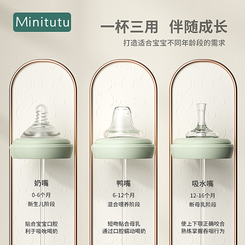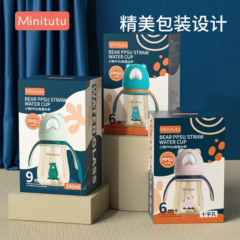 小熊宽口径PPSU吸水嘴杯防胀气抗摔水杯宝宝饮水杯喝水耐摔耐高温