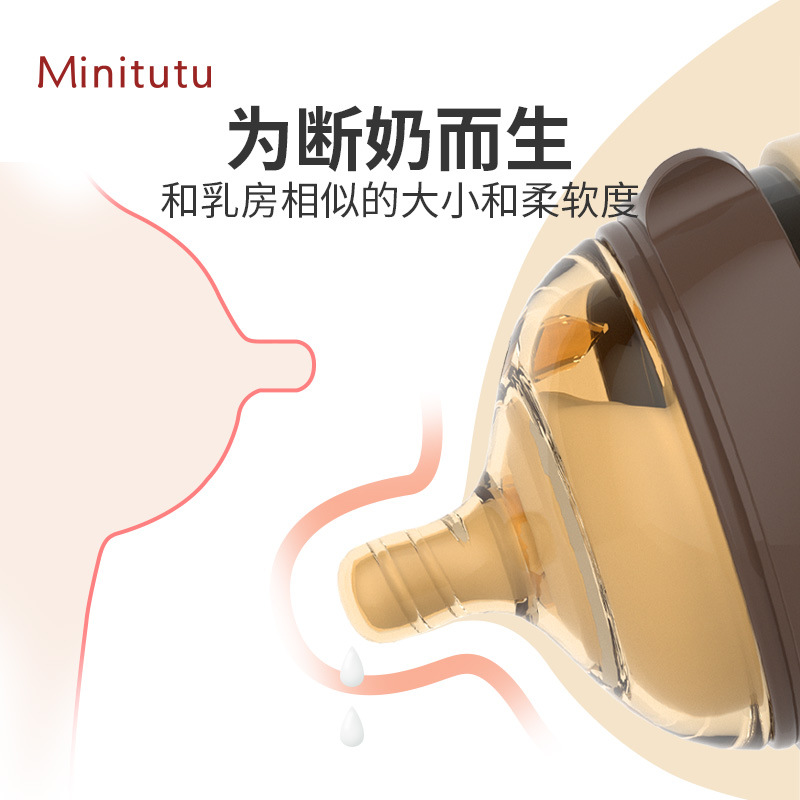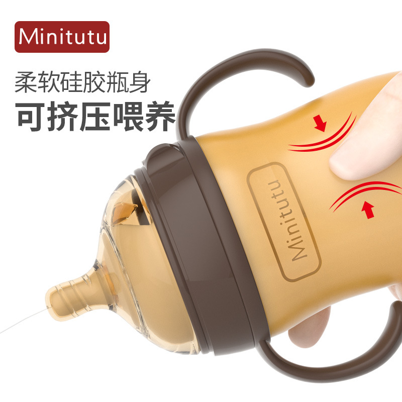 Minitutu 广口硅胶奶瓶断奶神器0-3岁大宝宝,7.0口径全硅胶奶瓶