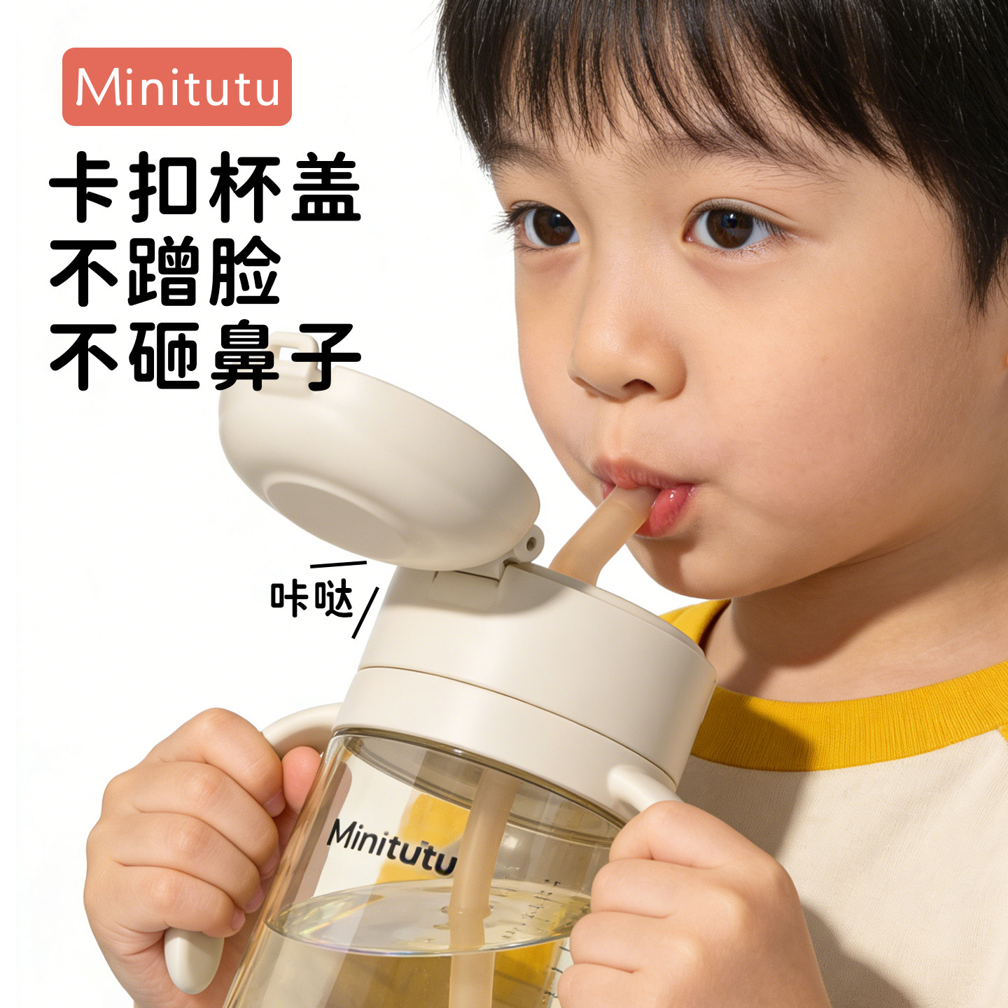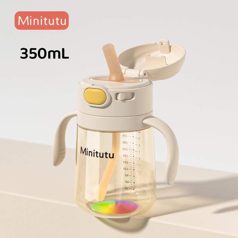 Minitutu 彩虹底大口径翻盖弹跳PPSU水杯350mL宝宝喝水喝奶吸管杯
