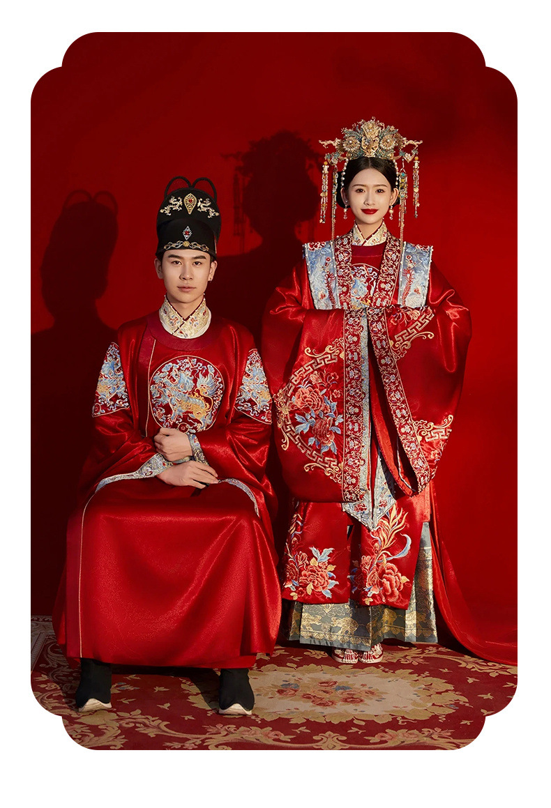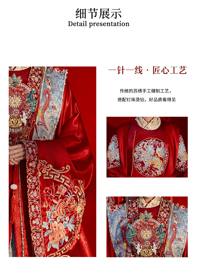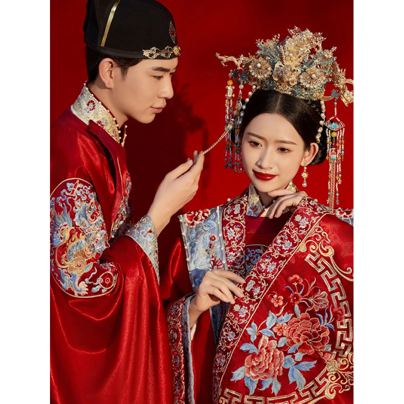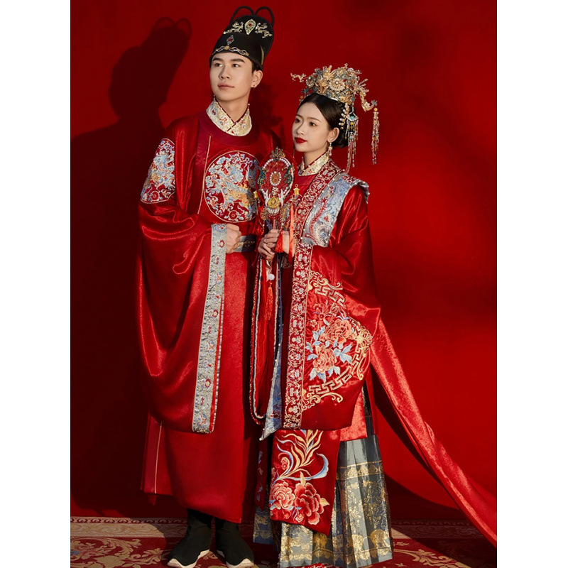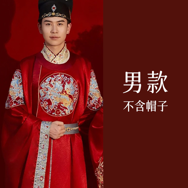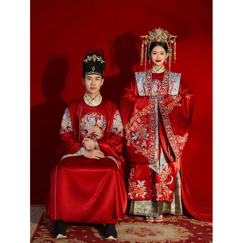 新郎明制汉服婚服重工中式嫁衣凤冠霞帔情侣款套装秀禾服新娘拖尾