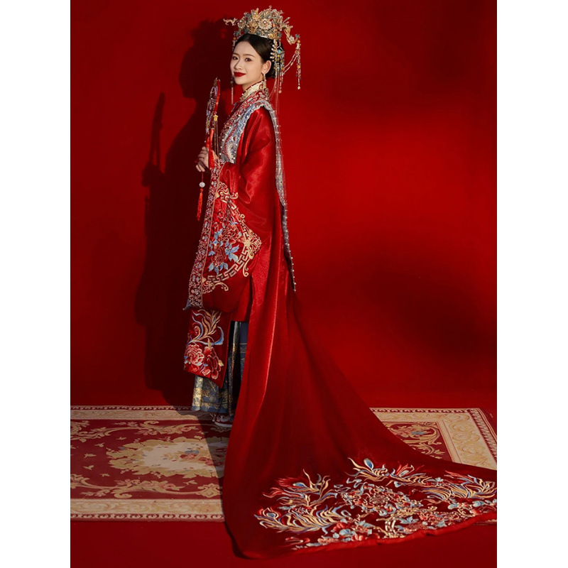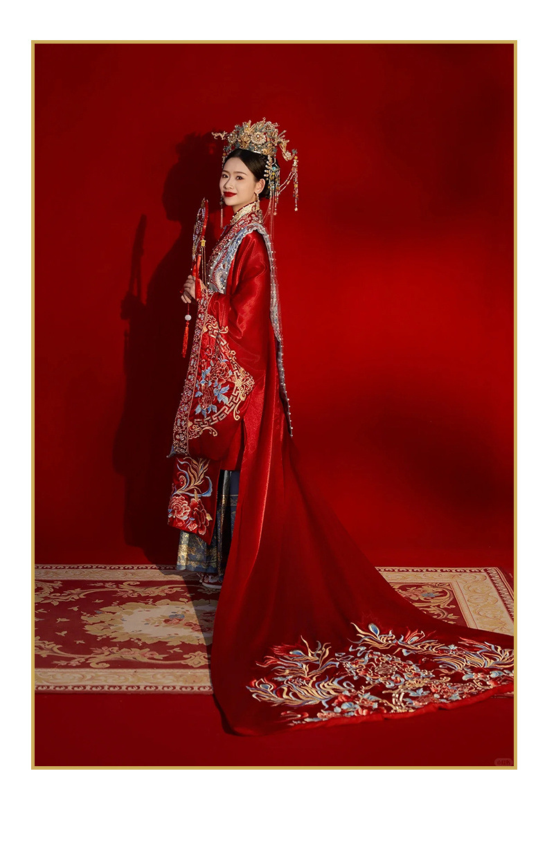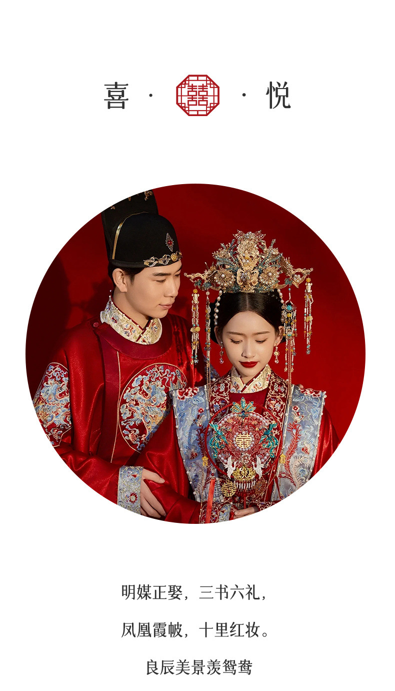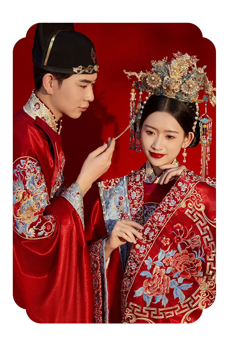 新郎明制汉服婚服重工中式嫁衣凤冠霞帔情侣款套装秀禾服新娘拖尾