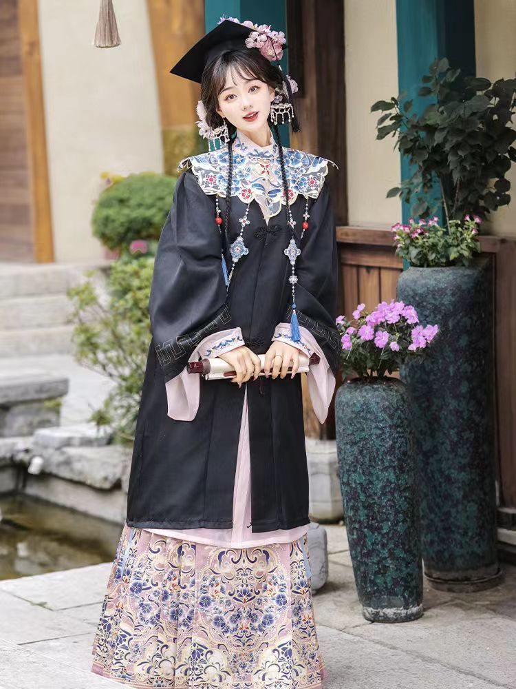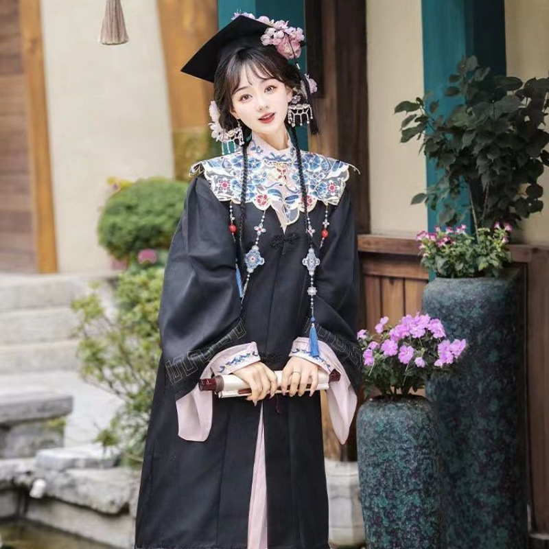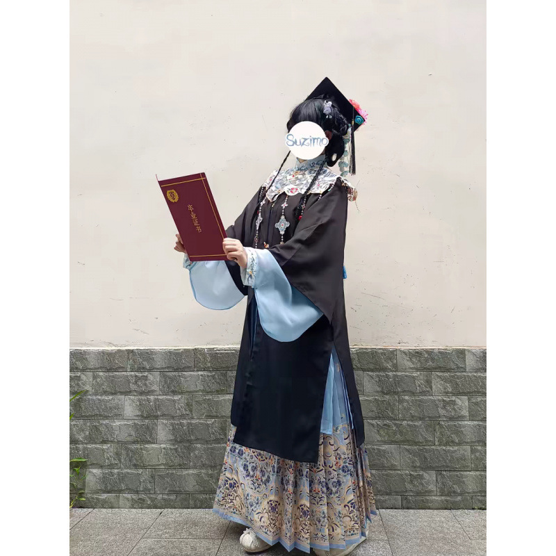 毕业服明制汉服女学士服套装立领配云肩新中式马面中国风国潮写真