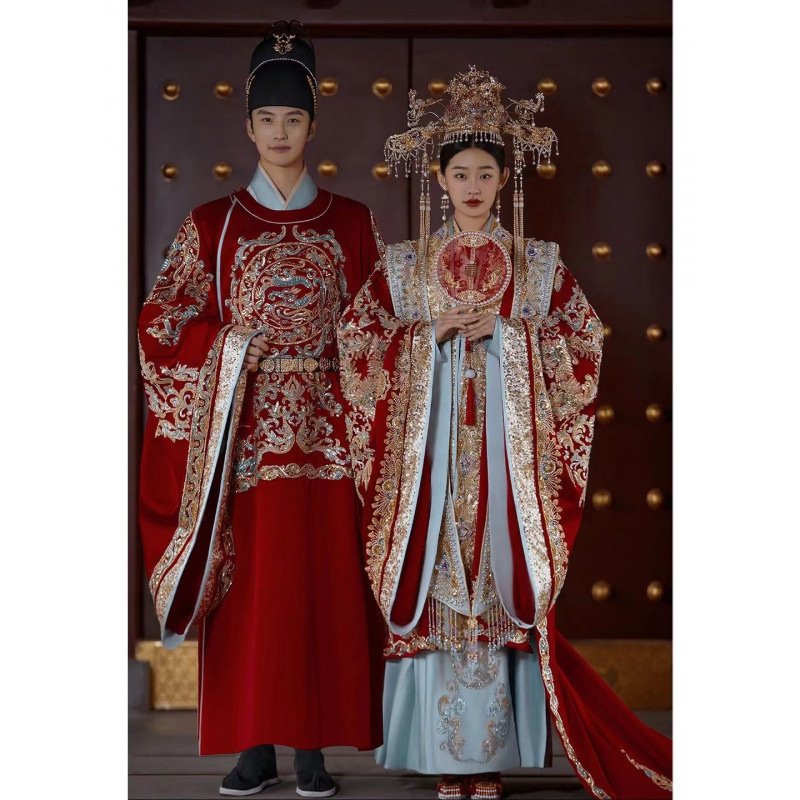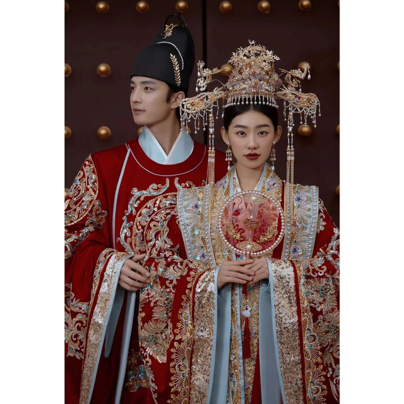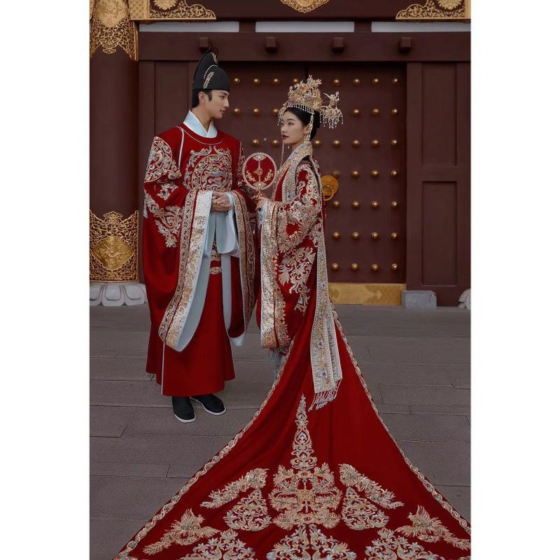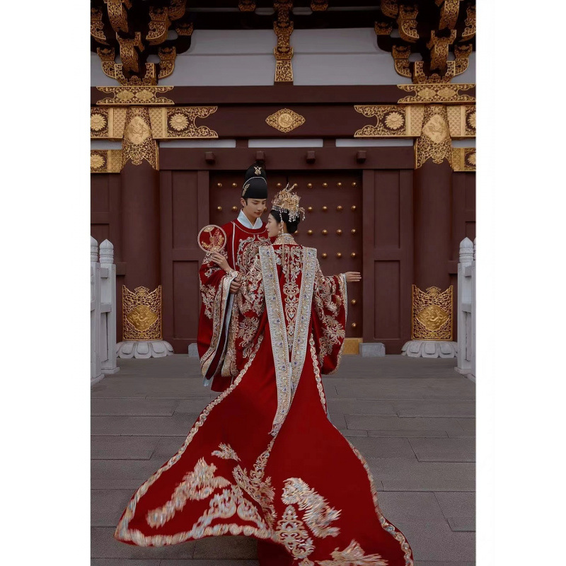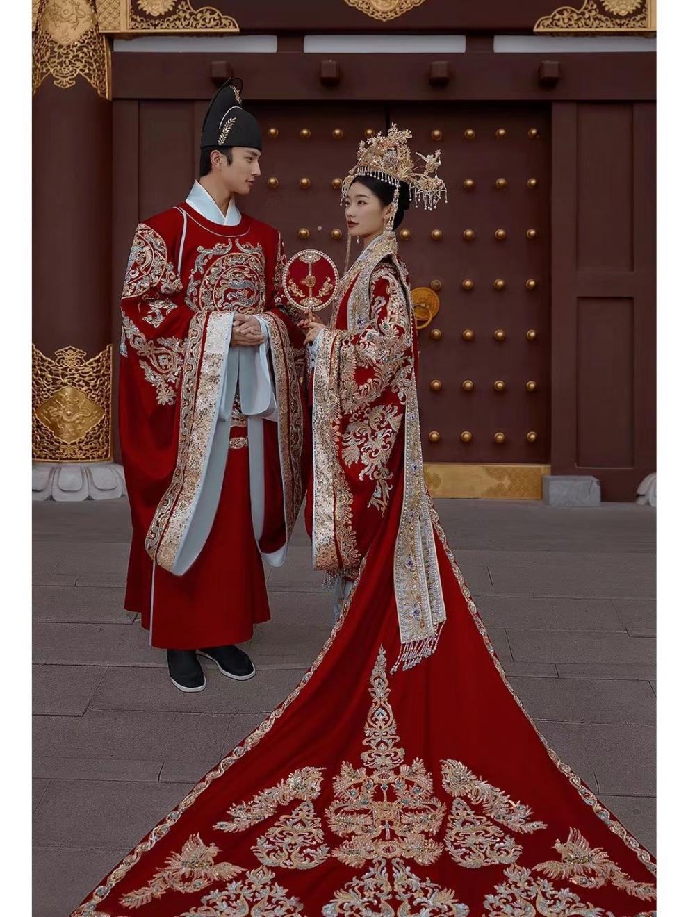 明制汉服婚服凤冠霞帔新娘结婚中式嫁衣礼服女长拖尾影楼拍照主题