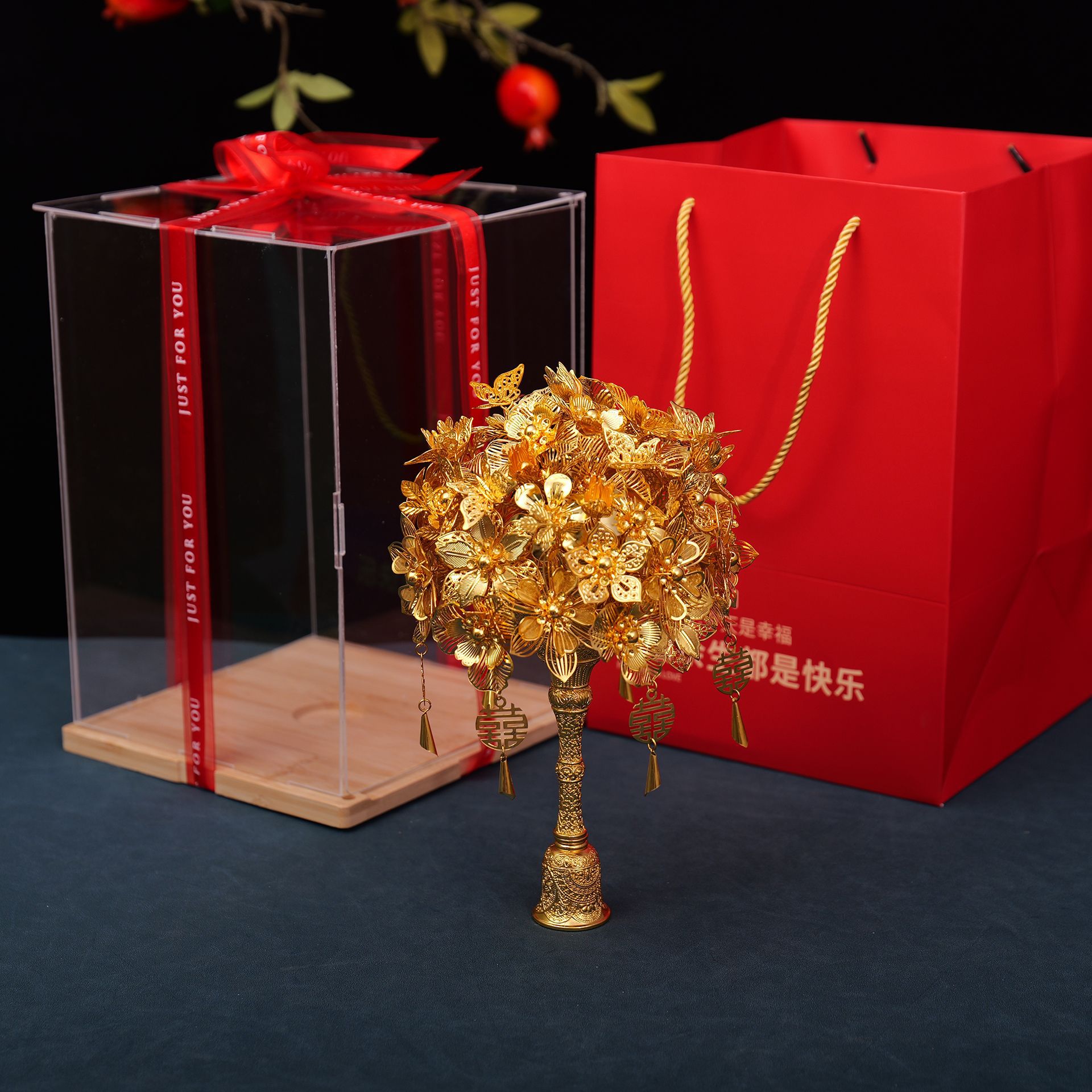 新款纯金色手捧花材料包中式婚礼新娘秀禾服权杖送闺蜜结婚礼物