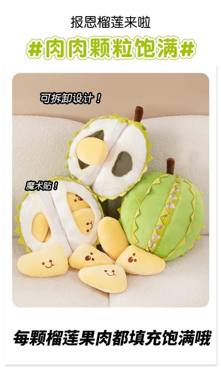网红报恩榴莲毛绒玩具仿真水果玩偶解压创意可拆卸可撕拉公仔抱枕