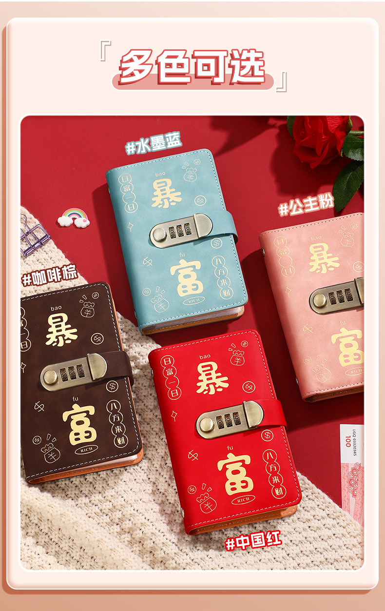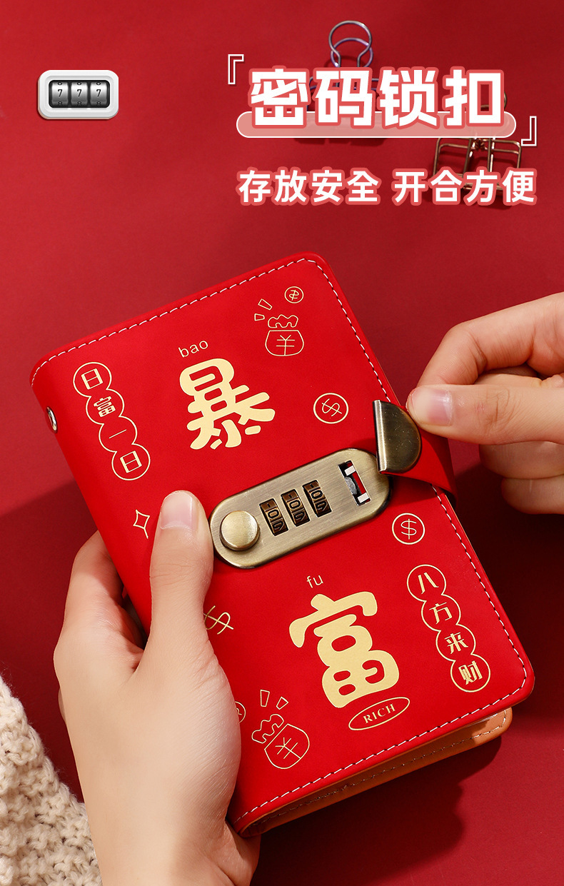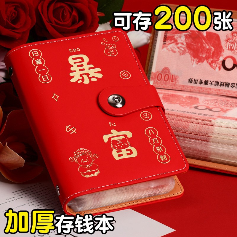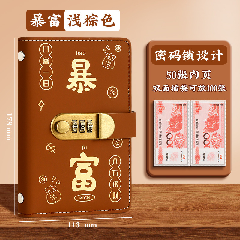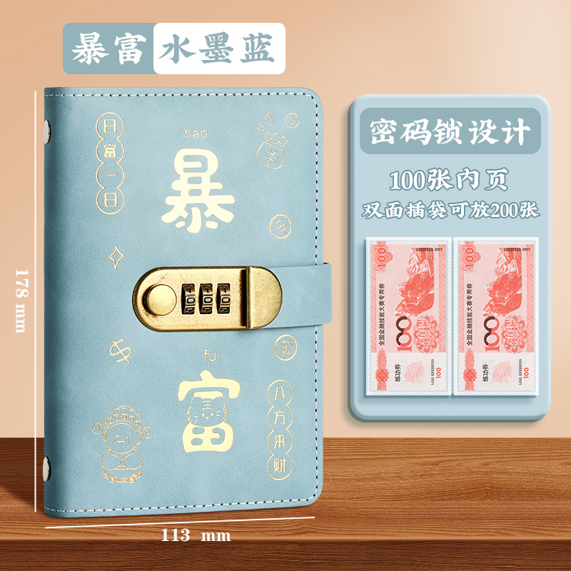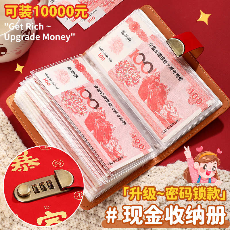现货网红爆款现金存钱本收纳册密码锁大容量暴富存钱夹钱册理财册