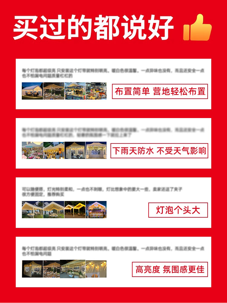 | 【营地布置】插电款- 50米200灯 可串联 | USD $44.98 | 3986 m available |