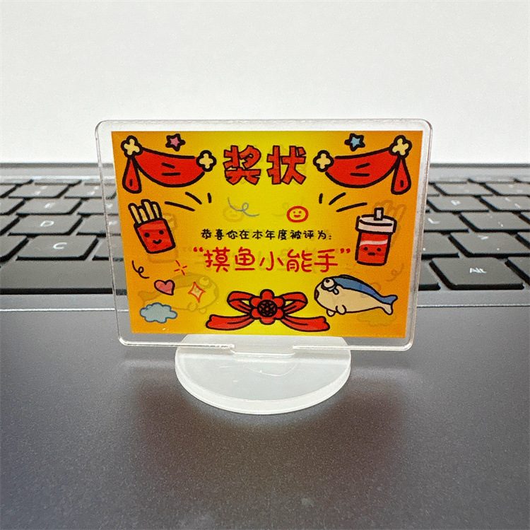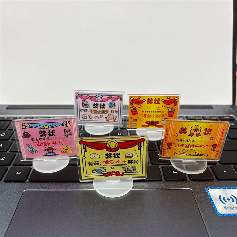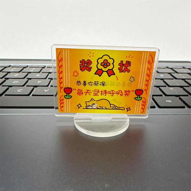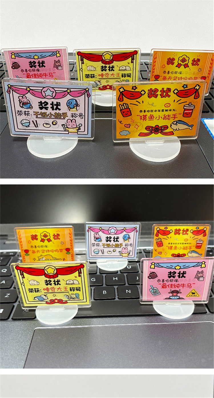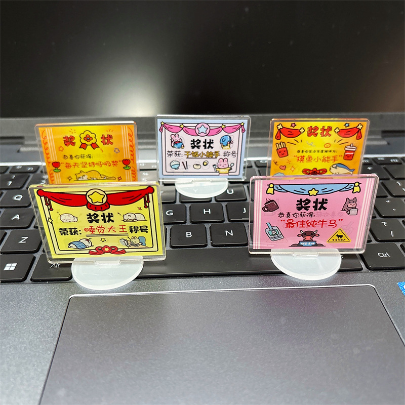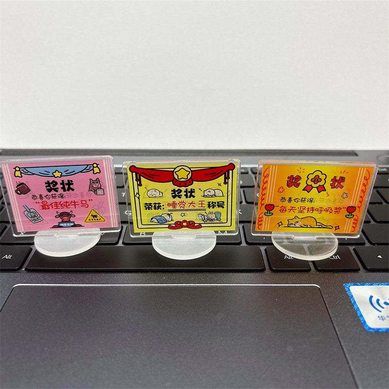 迷你可爱奖状立牌卡通亚克力佛系趣味解压桌面小摆件文字励志立牌