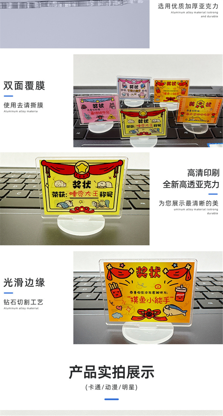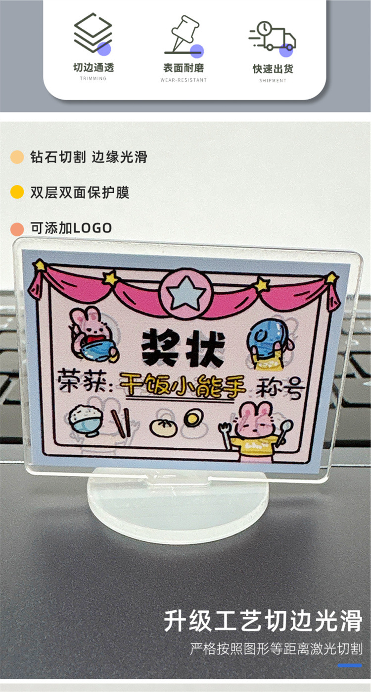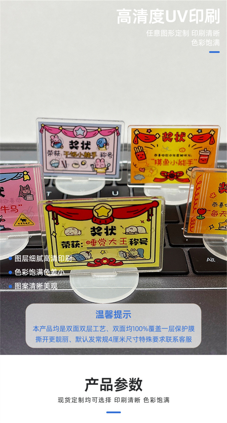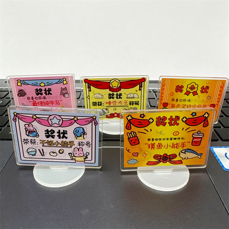 迷你可爱奖状立牌卡通亚克力佛系趣味解压桌面小摆件文字励志立牌