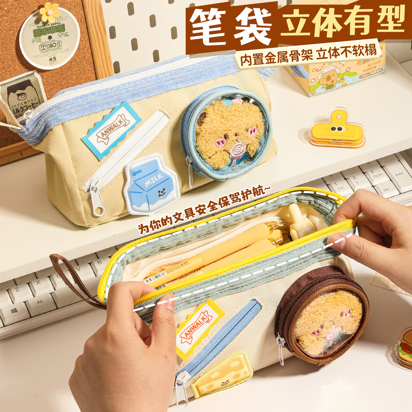 PJ可爱ins风日系美味食物魔术贴笔袋高颜值撞色多功能小学生文具