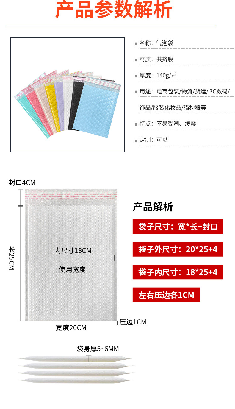 共挤膜气泡袋手机壳泡沫袋打包袋快递打包袋子自粘气泡袋防震防压
