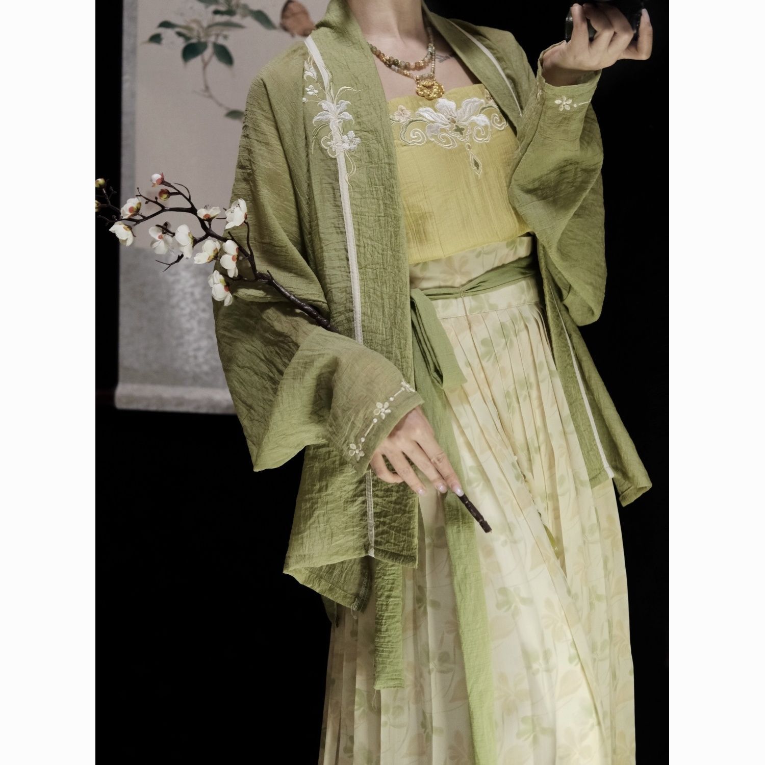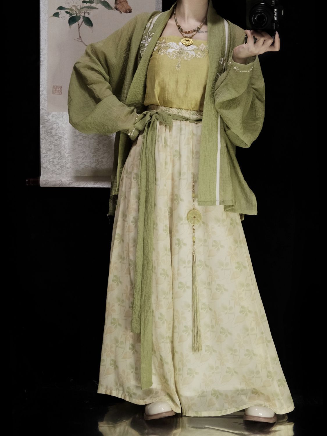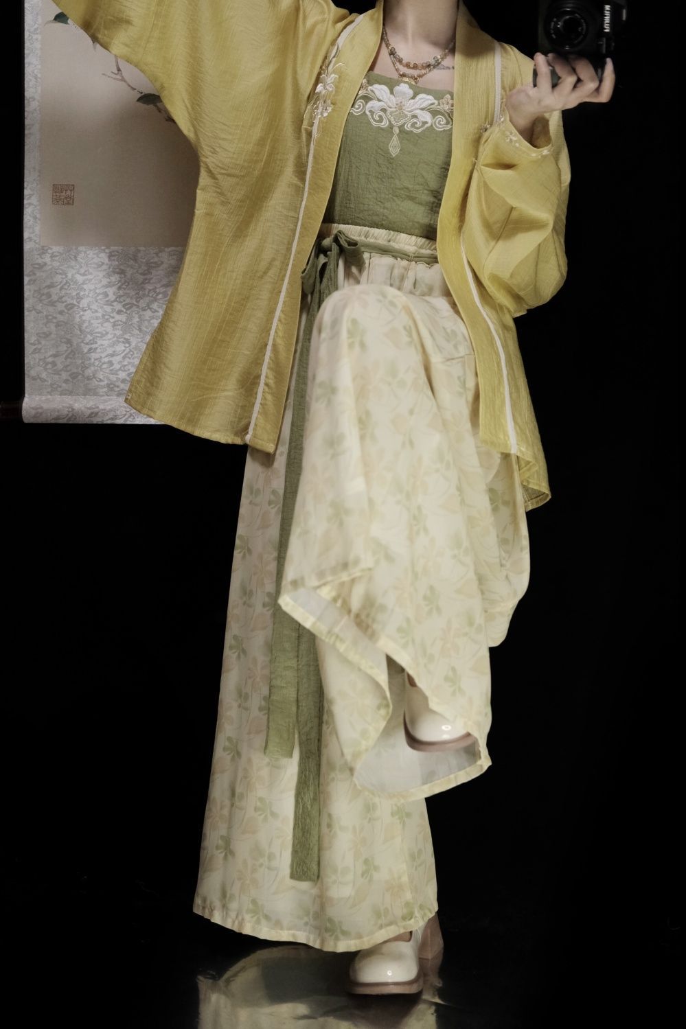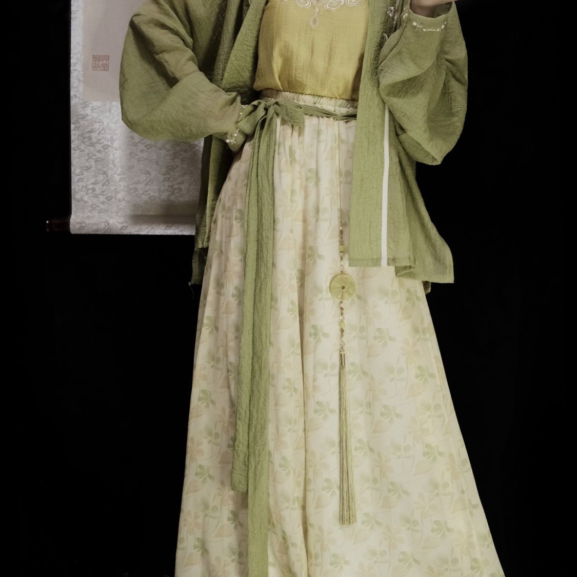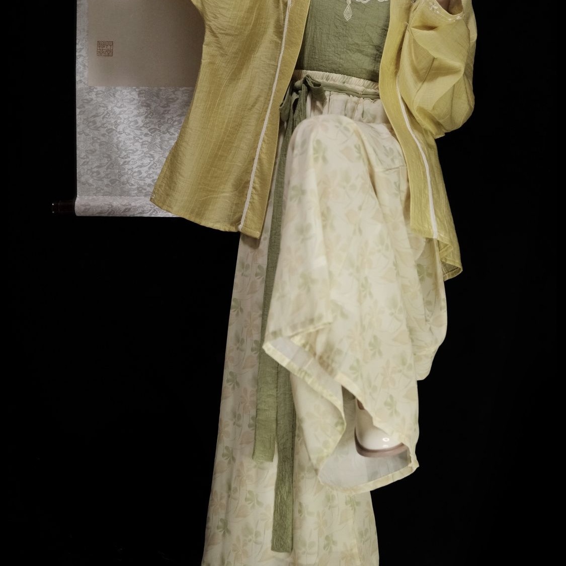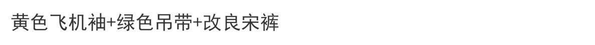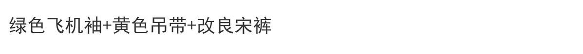 | 绿色 /飞机袖+黄色吊带+改良宋裤 | USD $21.43 | 1000 piece available |