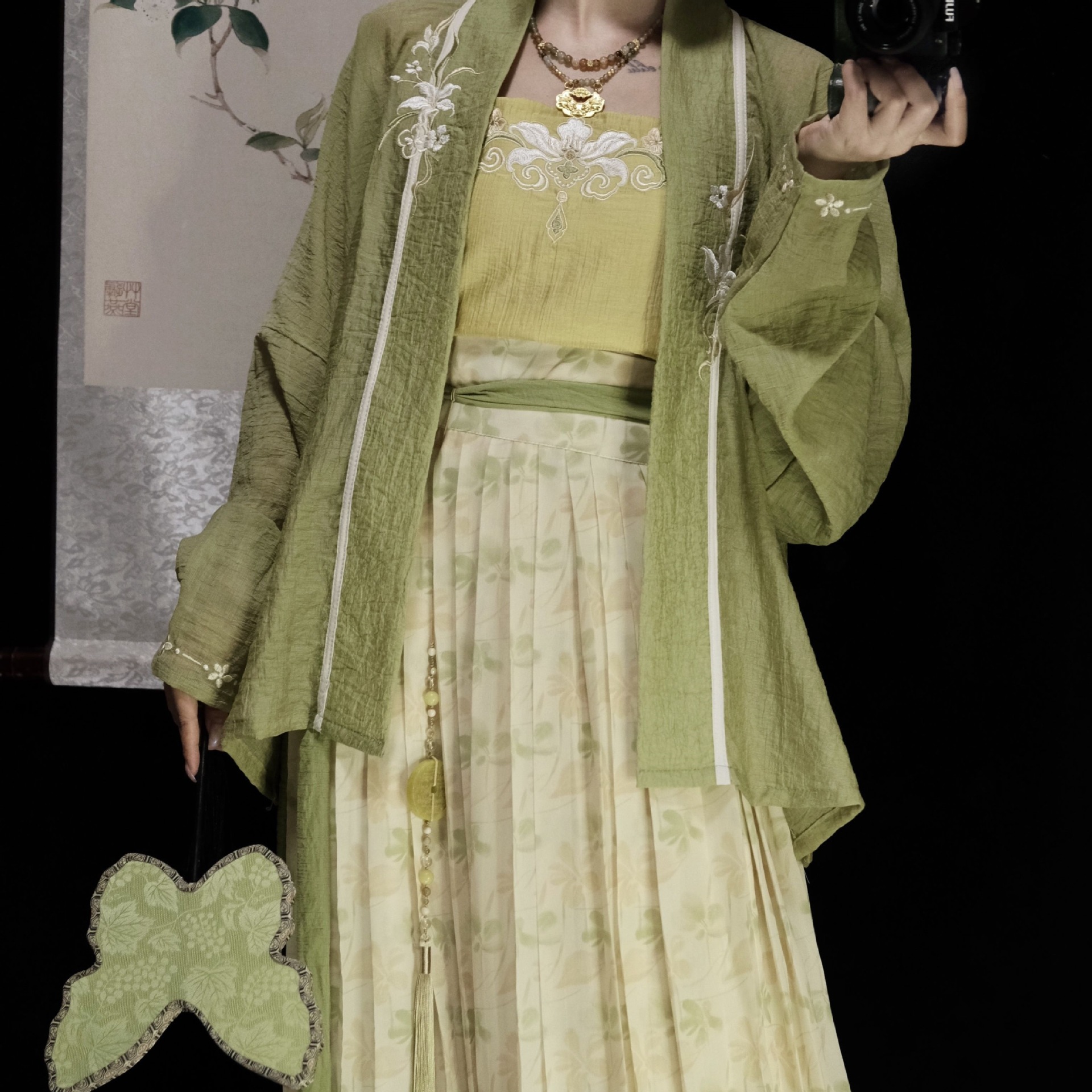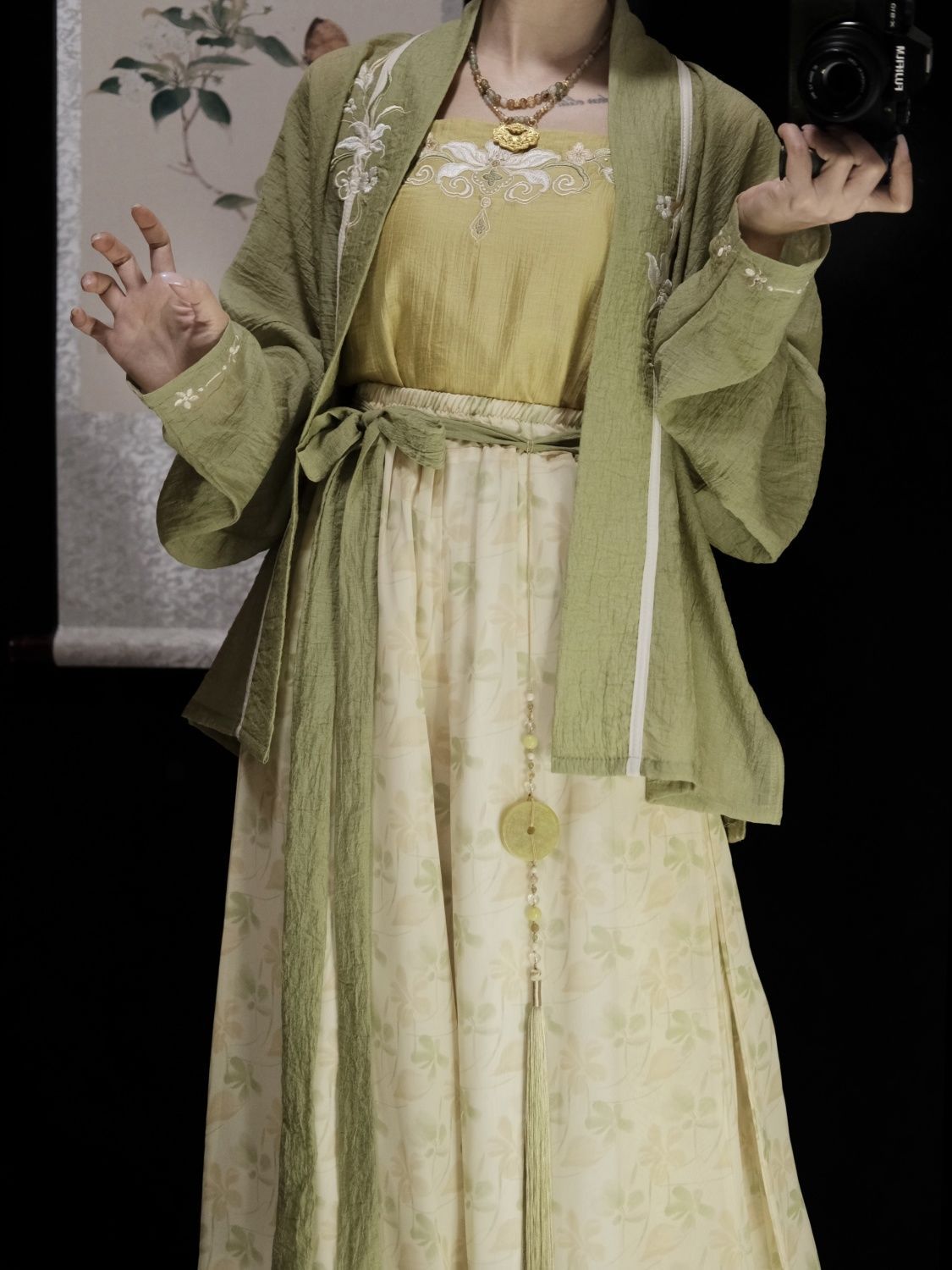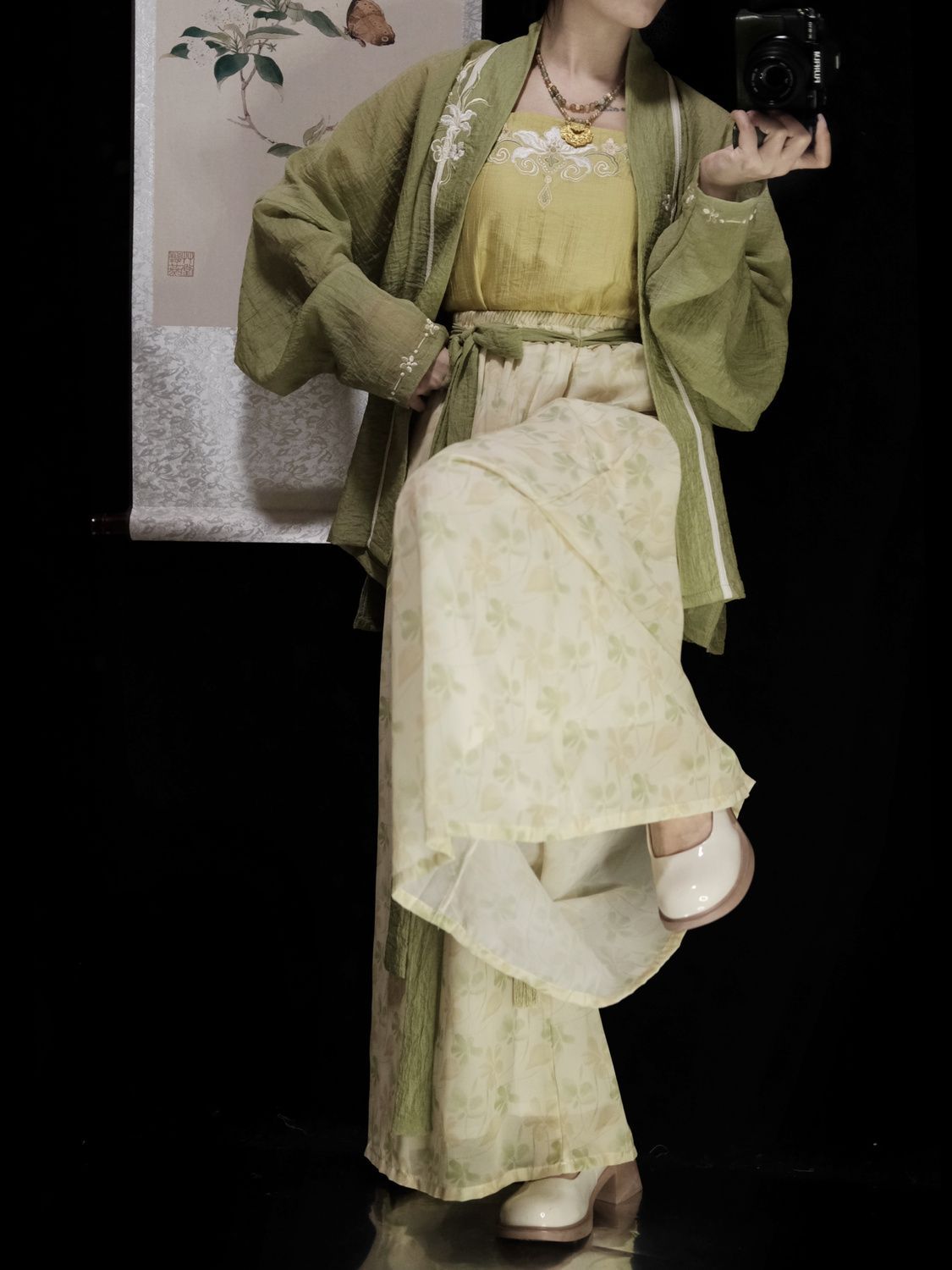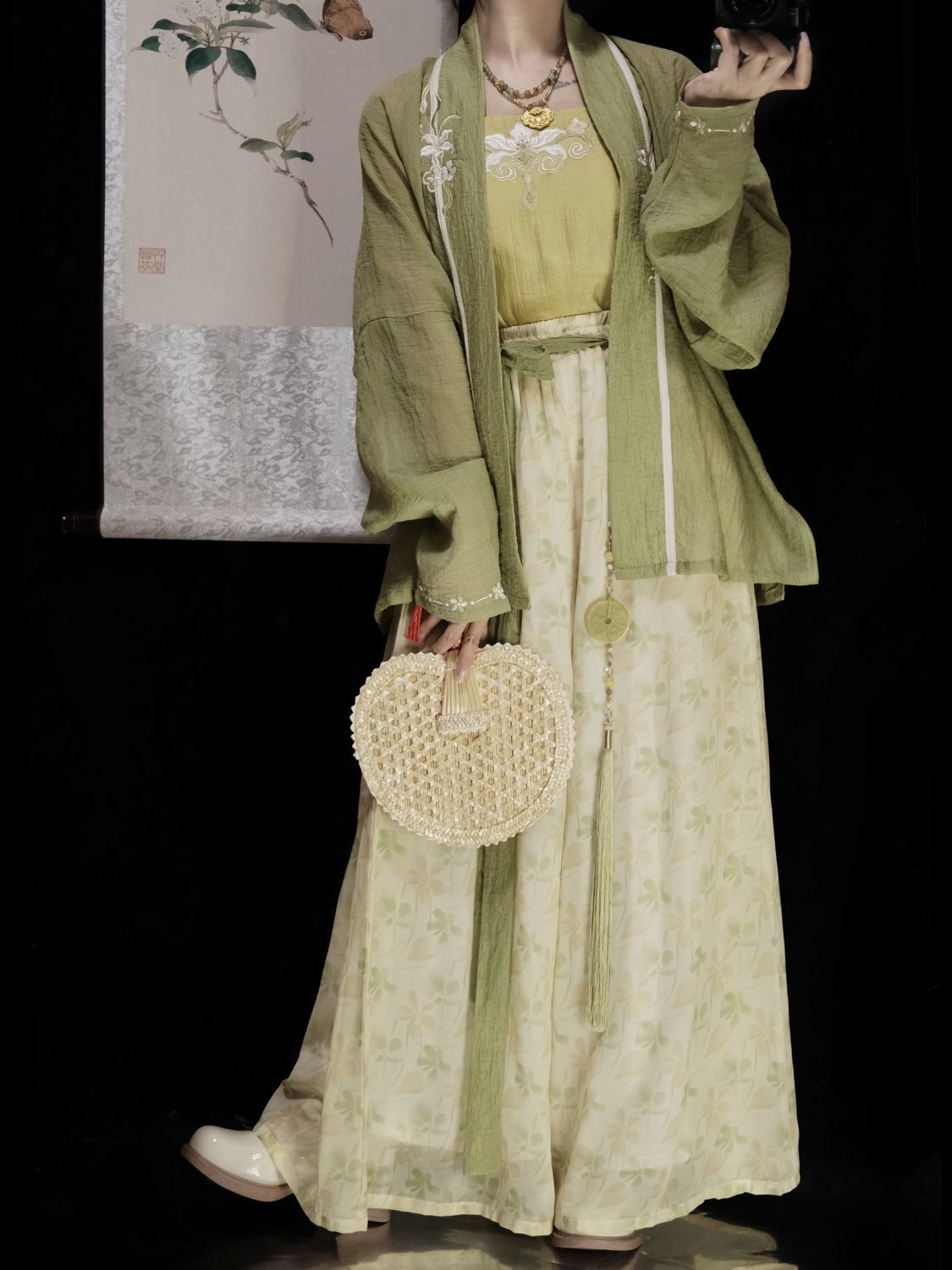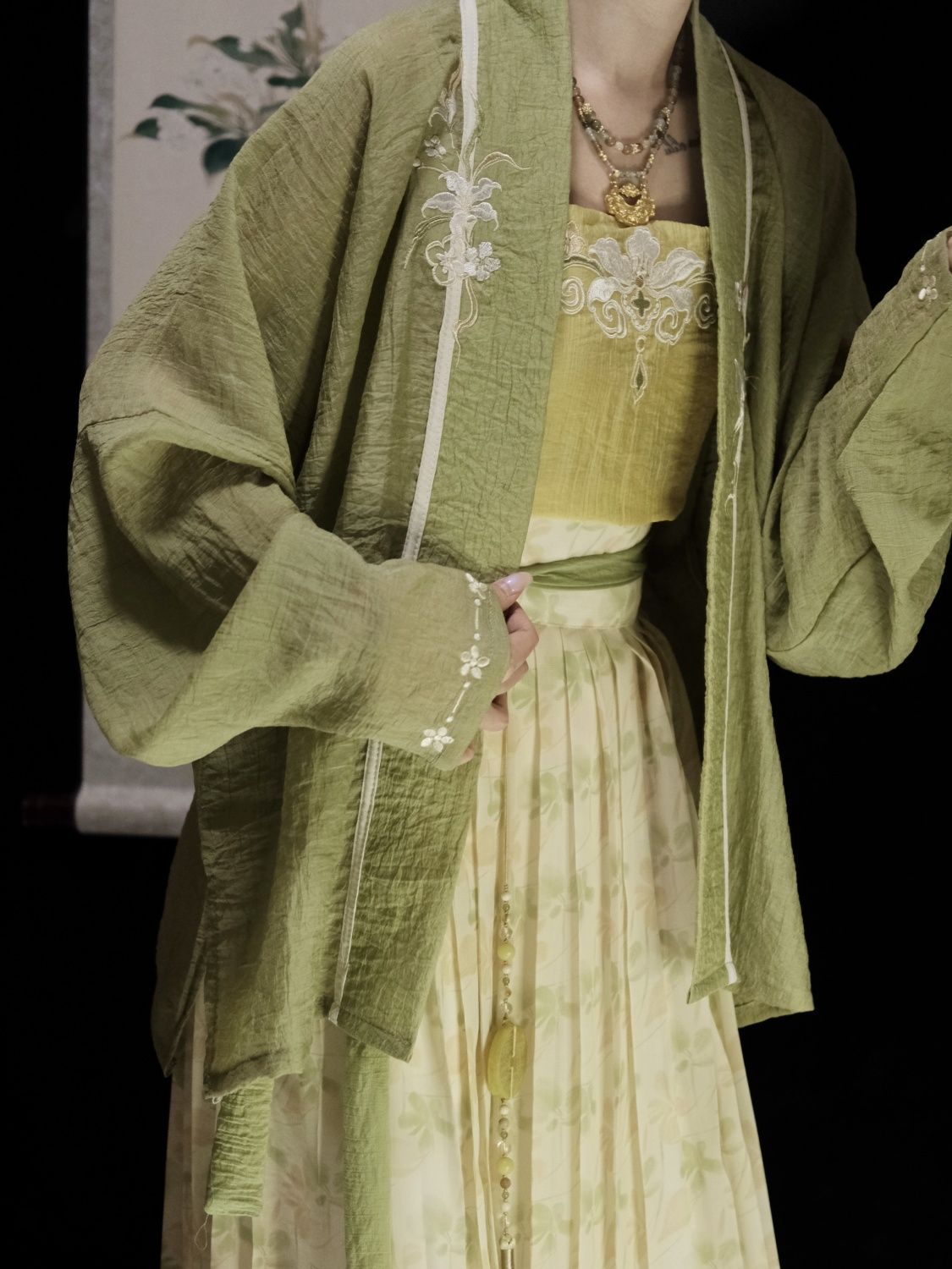 | 绿色 /飞机袖+黄色吊带+改良宋裤 | USD $21.43 | 1000 piece available |