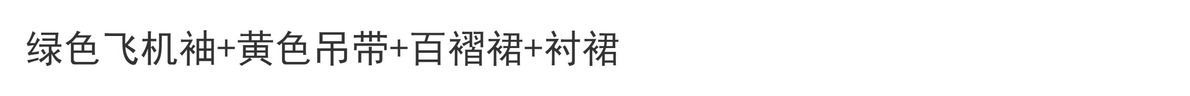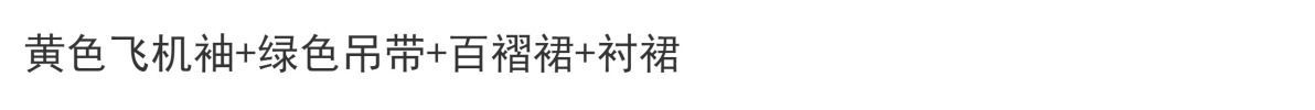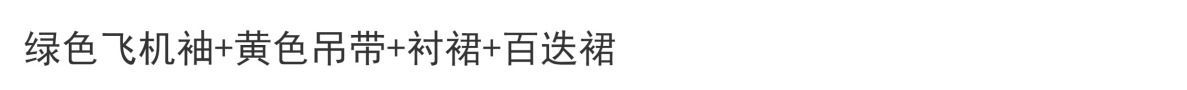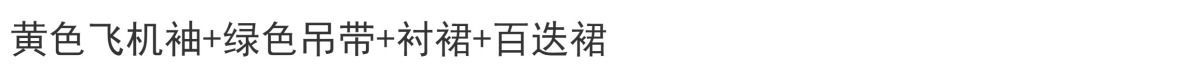 | 绿色 /飞机袖+黄色吊带+百迭裙+衬裙 | USD $21.43 | 689 piece available |