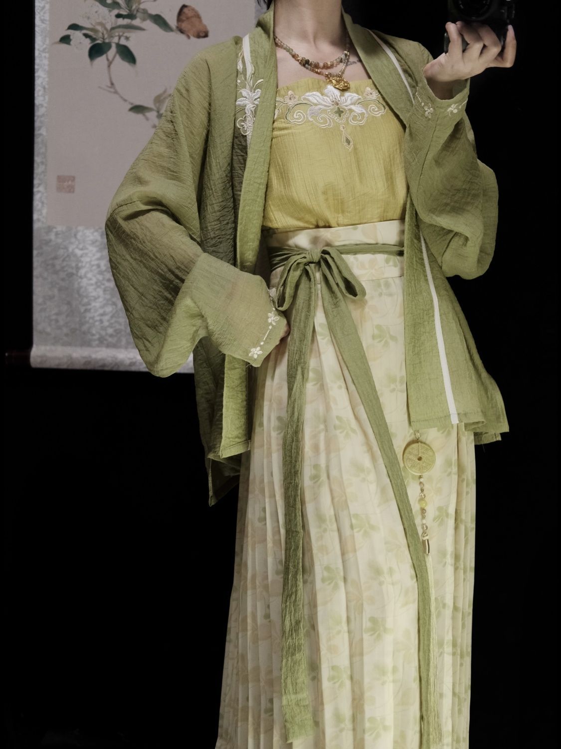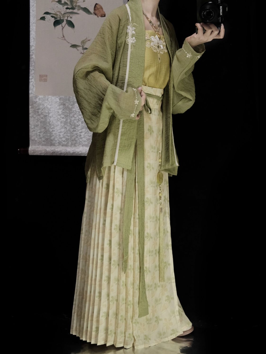 捌伍柒原创草茸茸宋制汉服女飞机袖百迭裙吊带百褶裙改良日常春夏