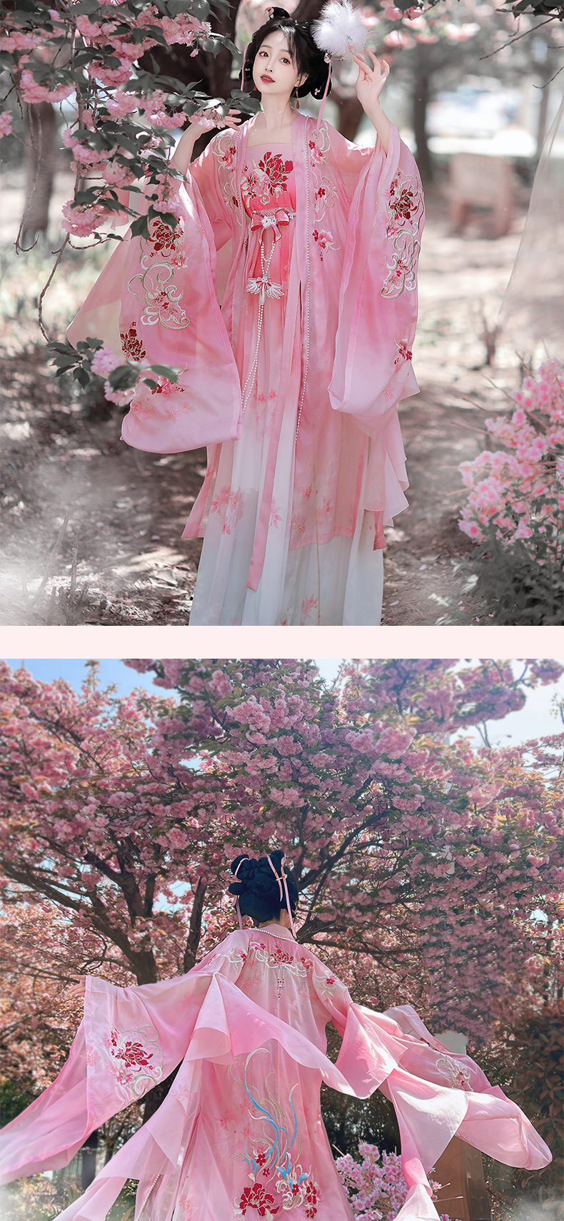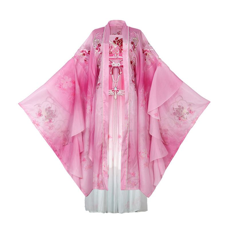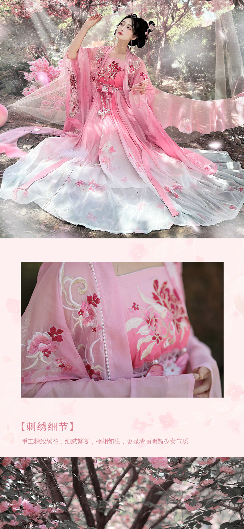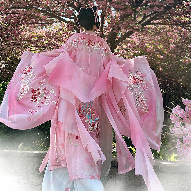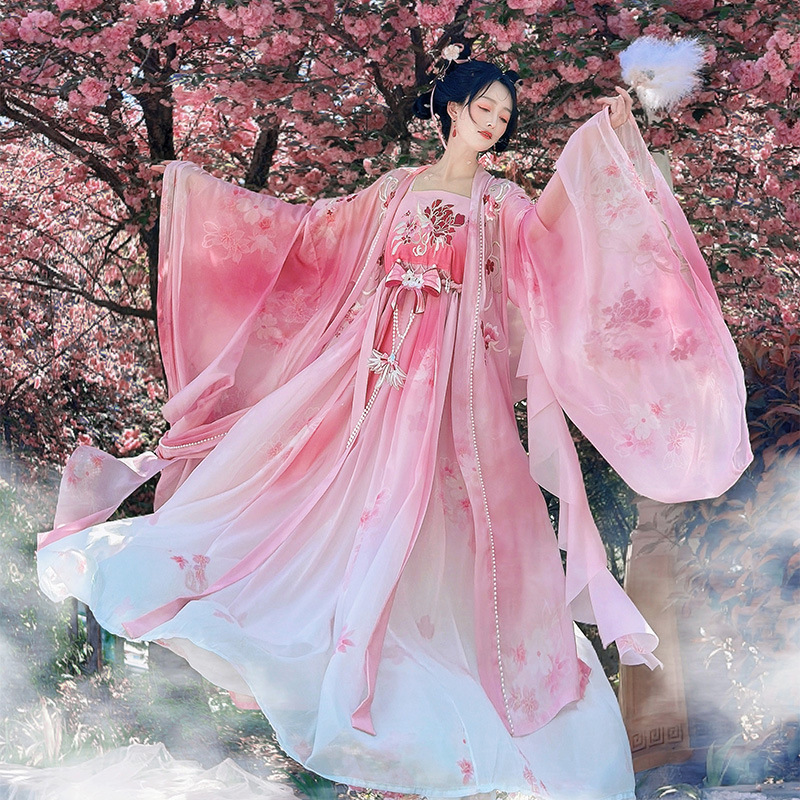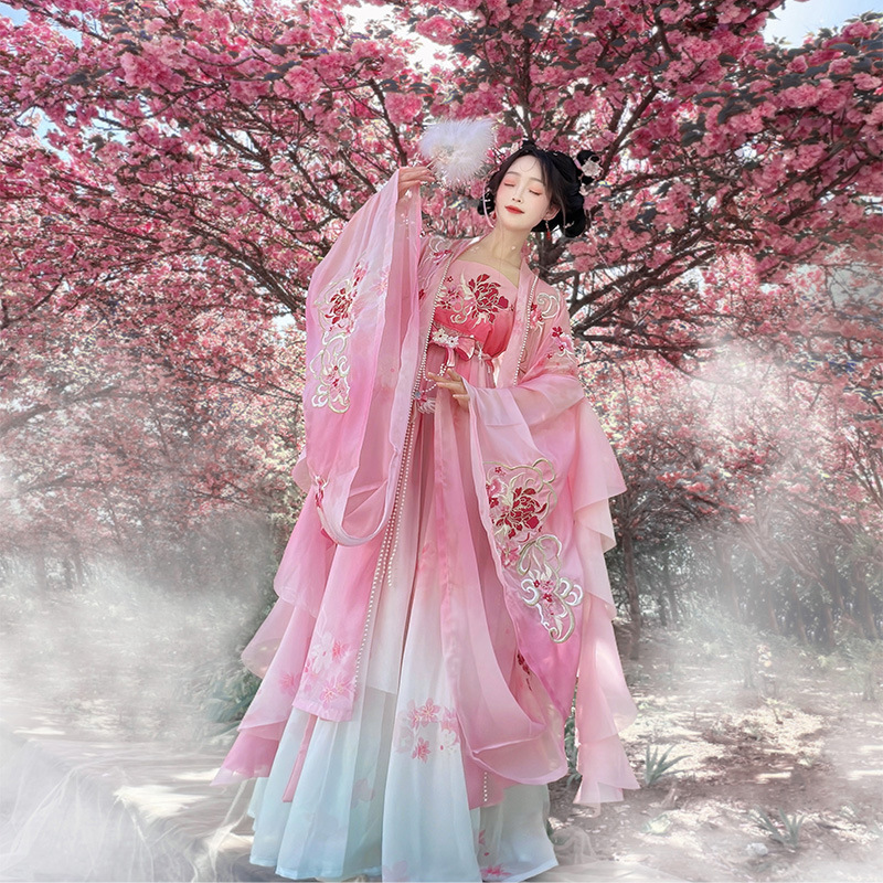 原创诃子裙汉服女2025新款夏季重工刺绣大袖改良仙气唐制古装粉色