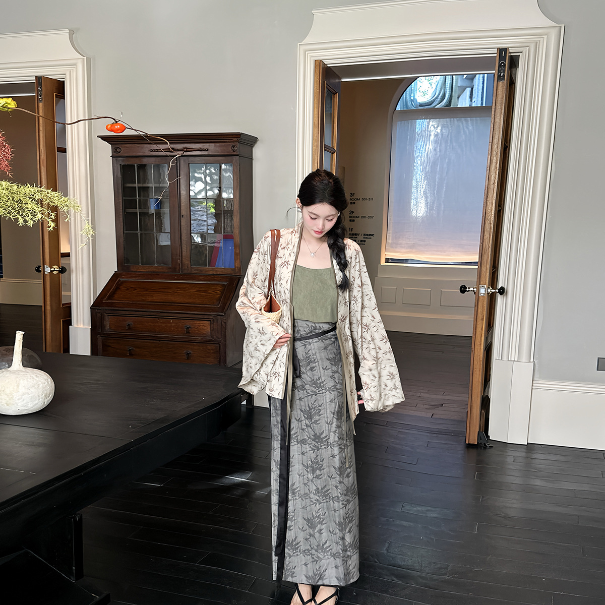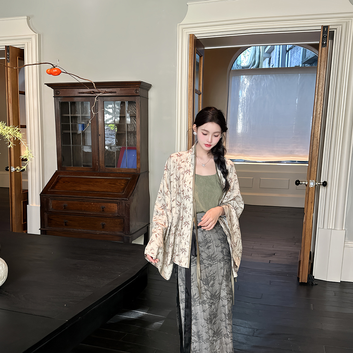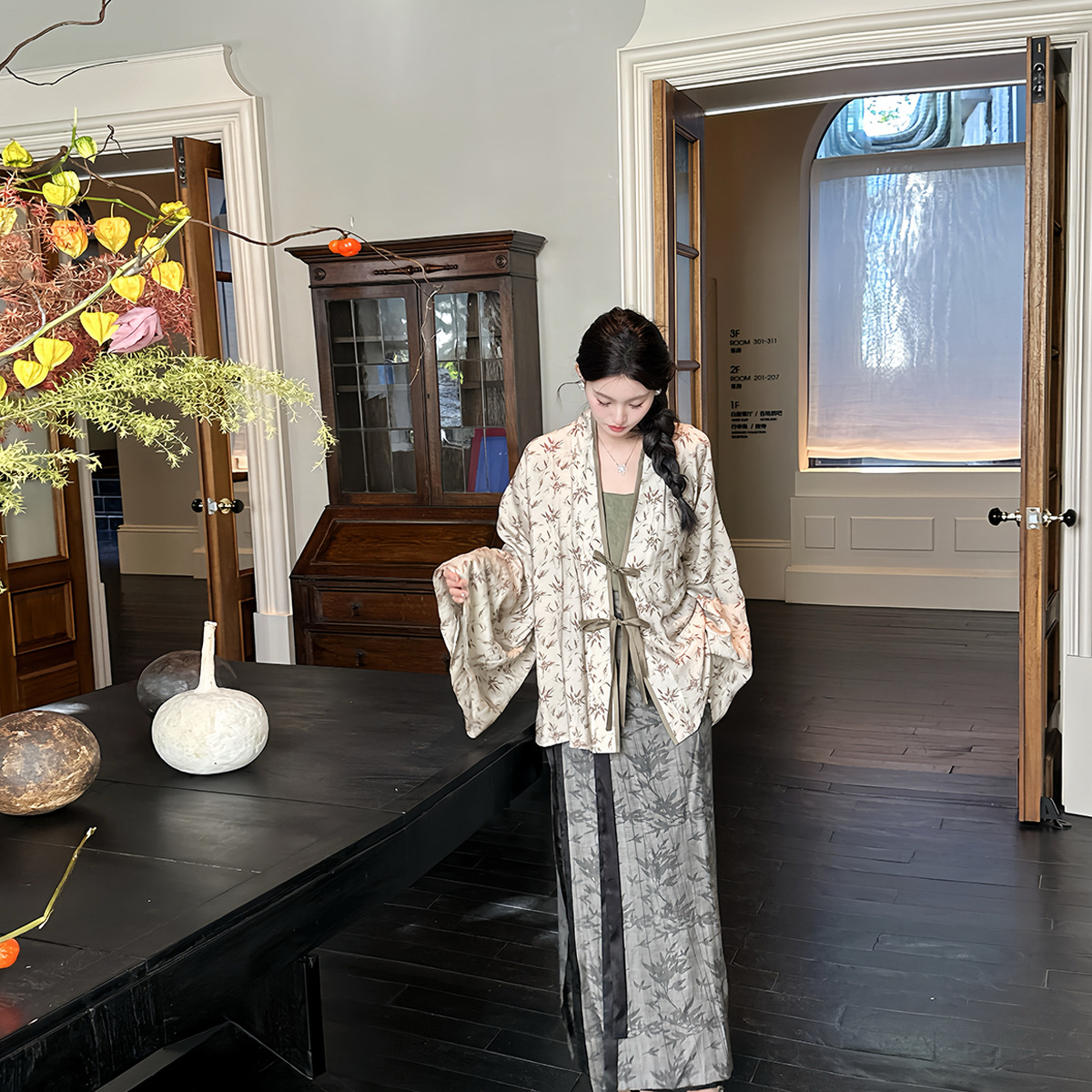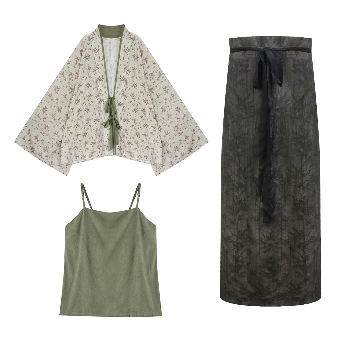 杨幂电影节同款 汉服[竹节词]魏晋北朝褶衣吊带新中式国风套装