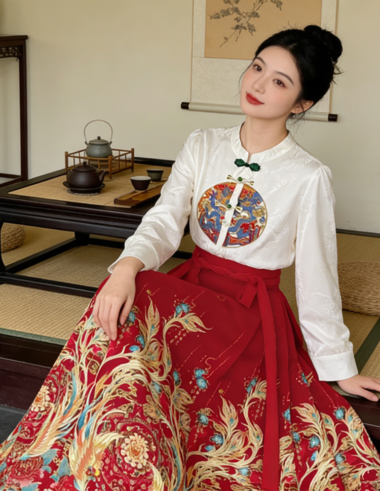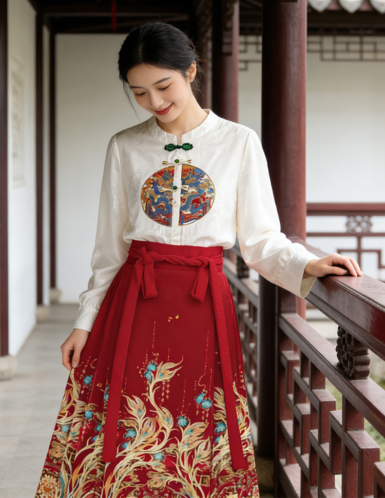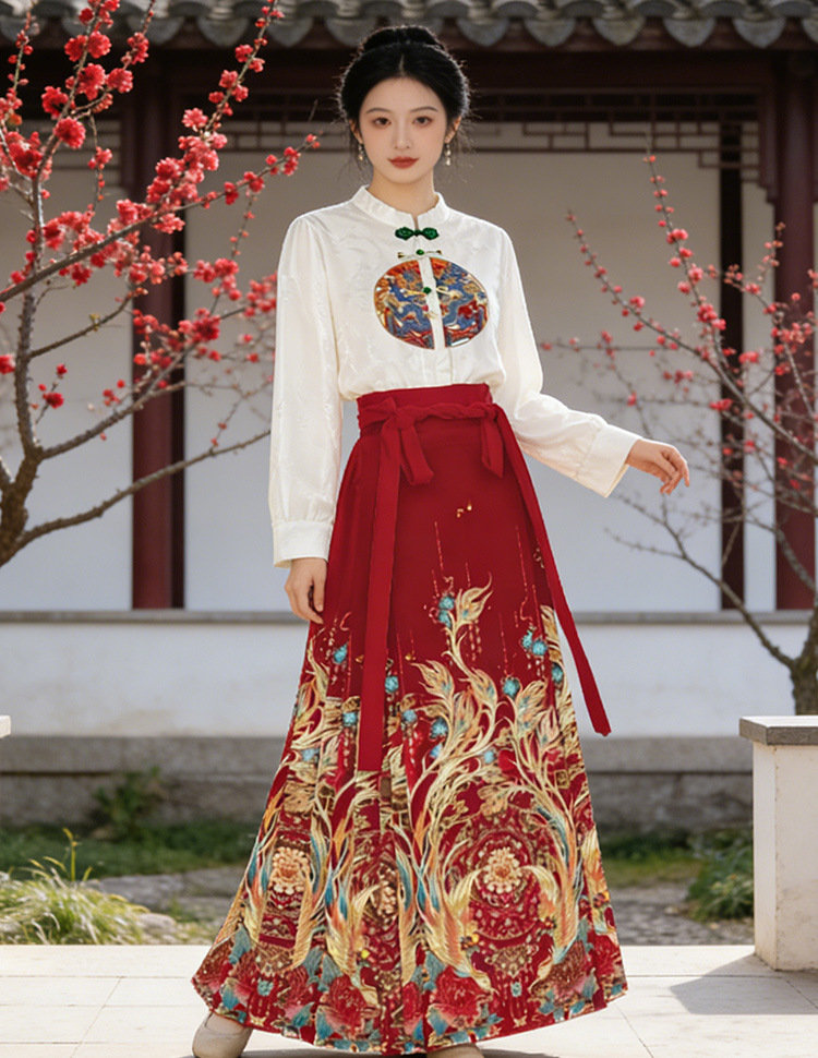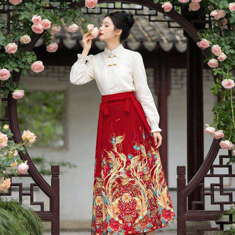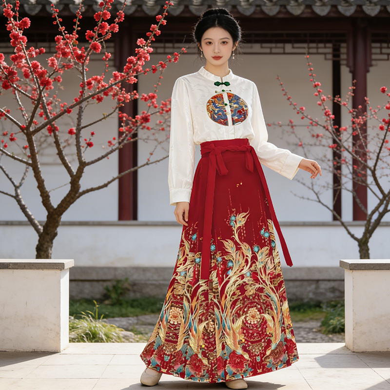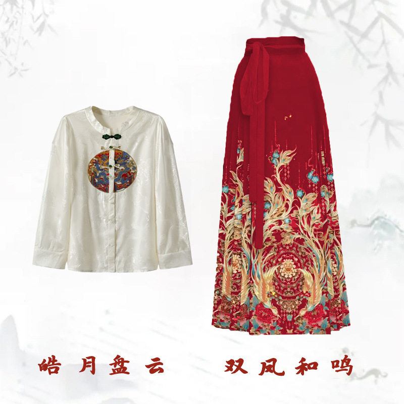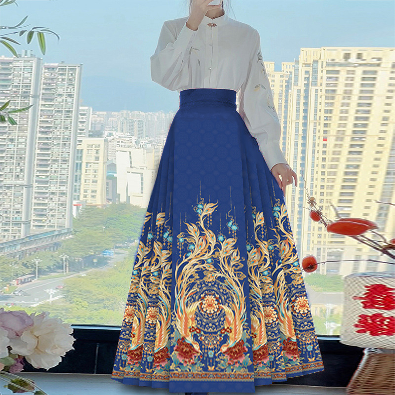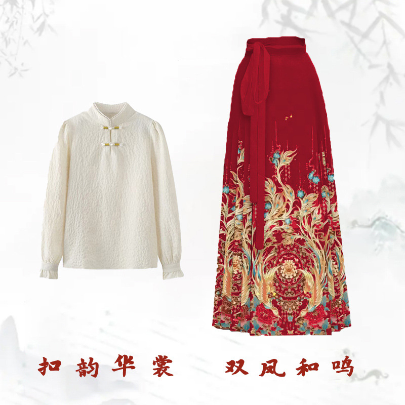 汉服马面裙套装女春夏季女大摆马面百褶长a字半身裙【双凤和鸣】