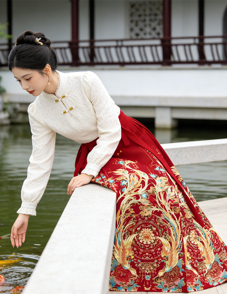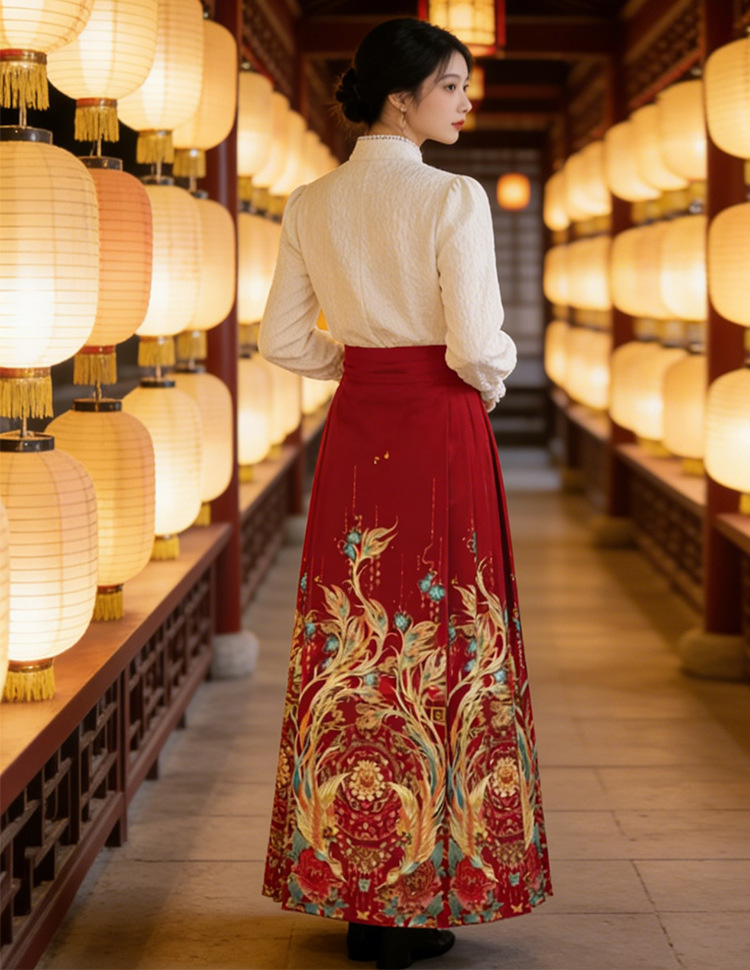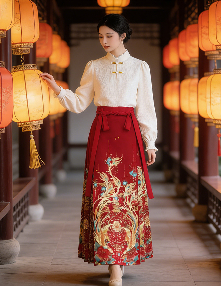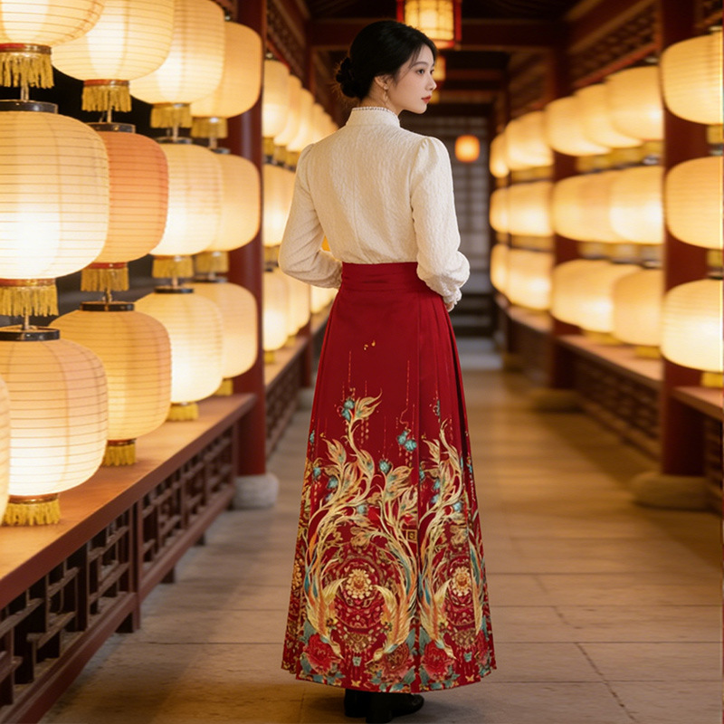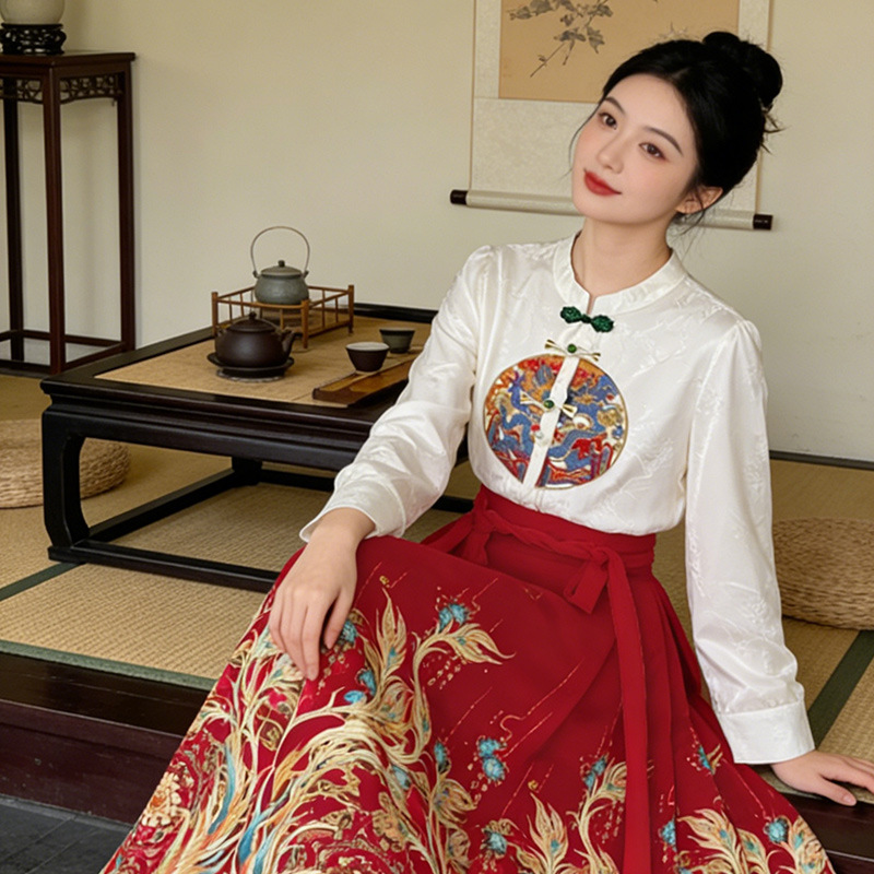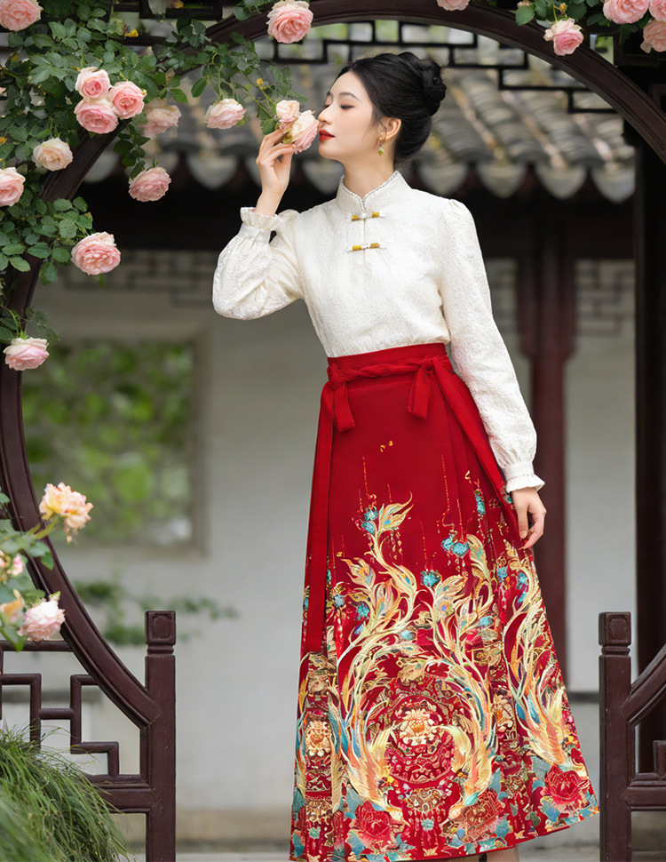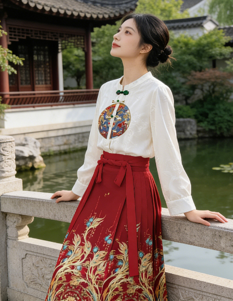 汉服马面裙套装女春夏季女大摆马面百褶长a字半身裙【双凤和鸣】