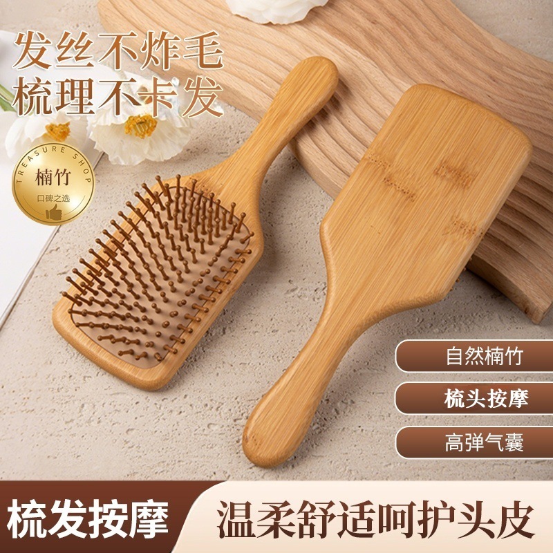 檀木气垫梳头部SPA大方板气囊梳头皮经络按摩蓬松颅顶按摩气囊梳