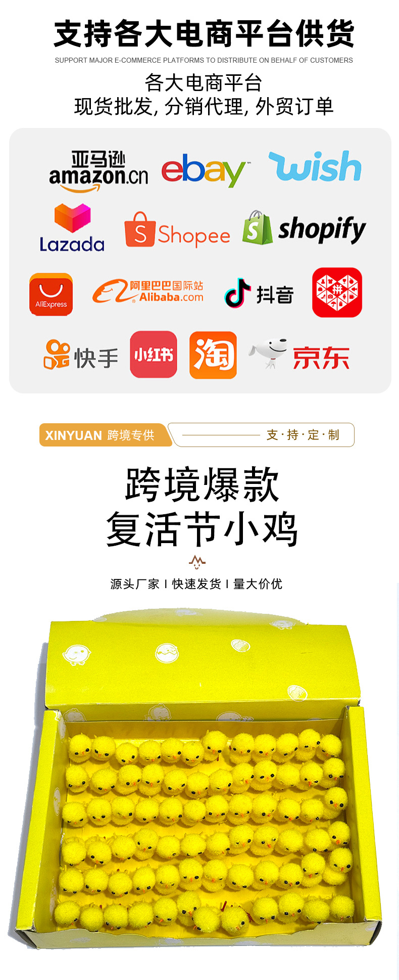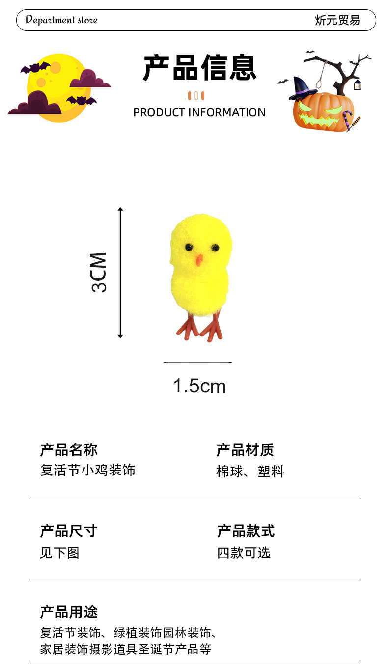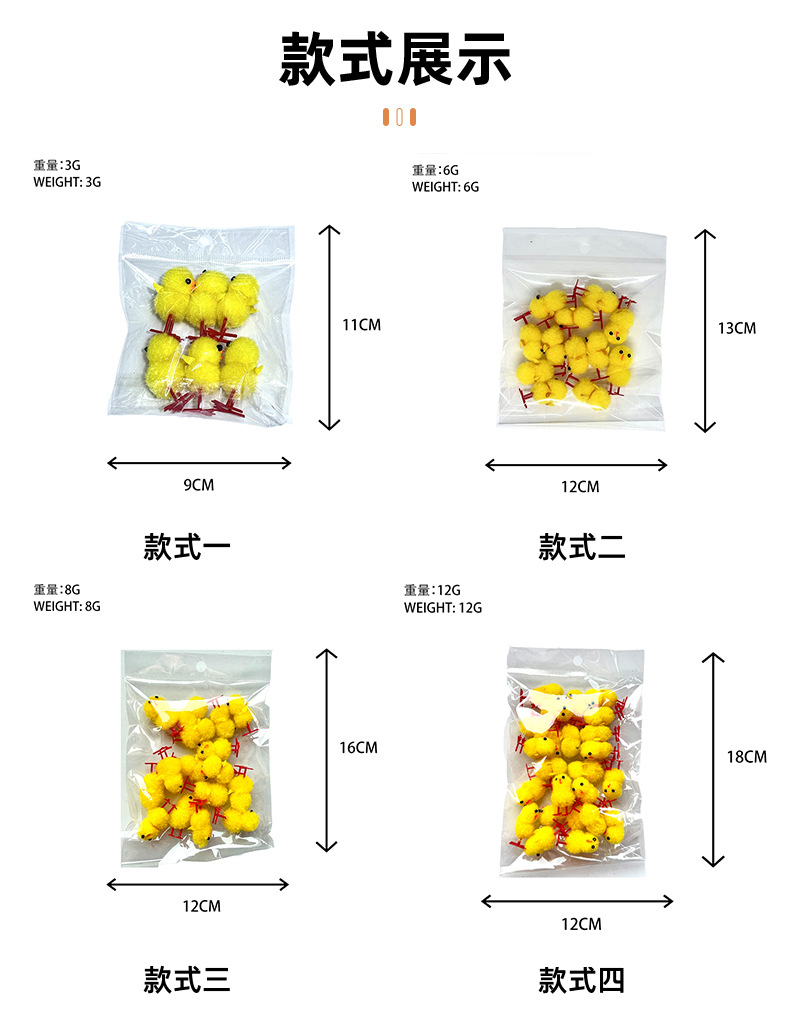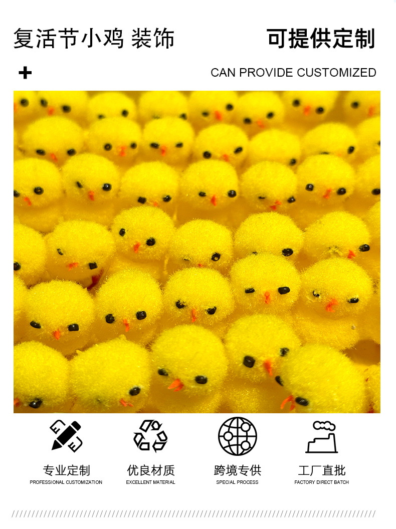 现货复活节小鸡 72只装高约3.0cm黄色棉球鸡复活节绒鸡复活节装饰