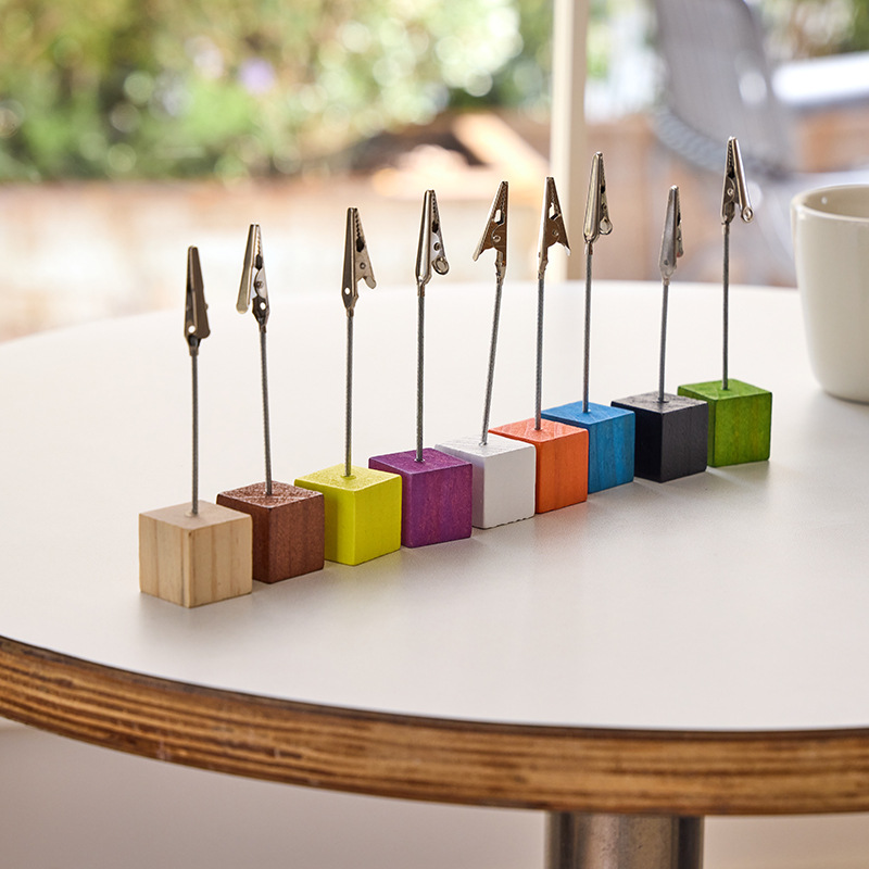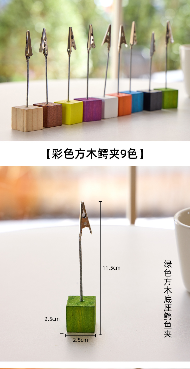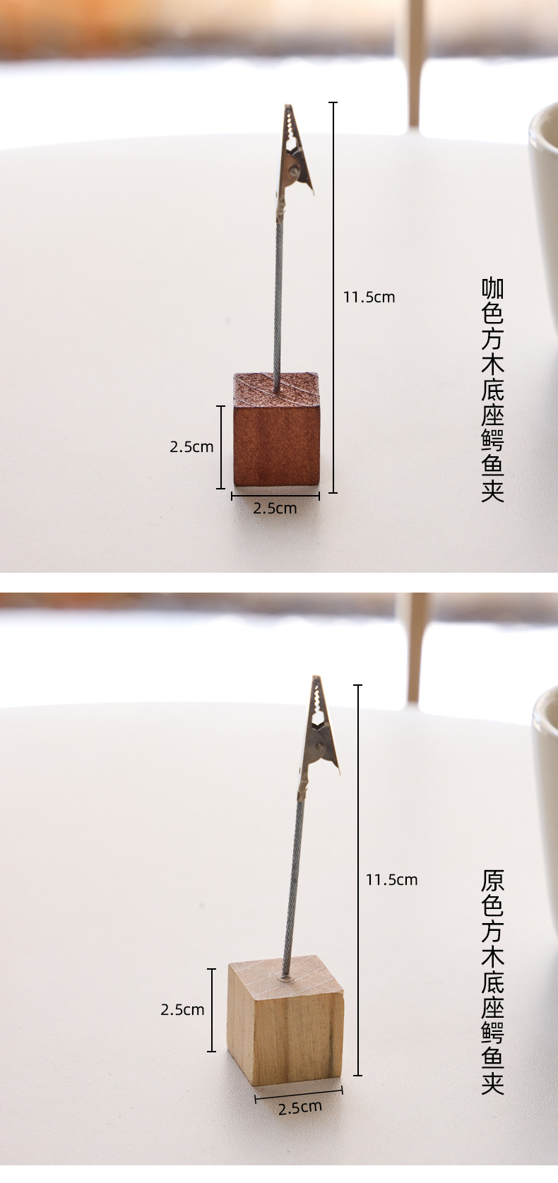 木质便签夹 木底座鳄鱼夹 婚礼席位卡片夹子 桌面摆件 照片留言夹