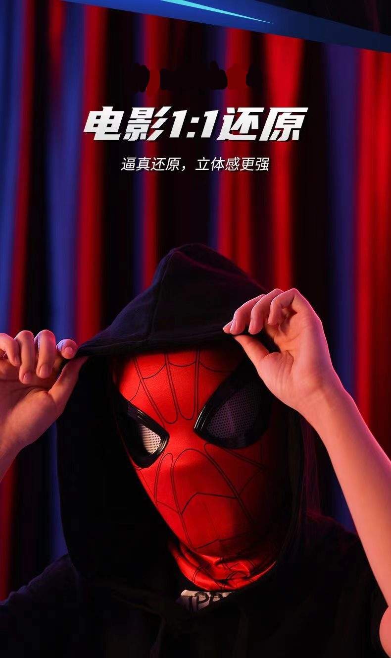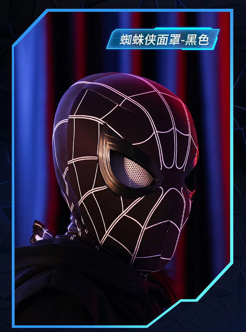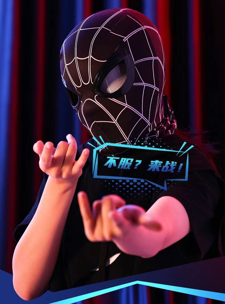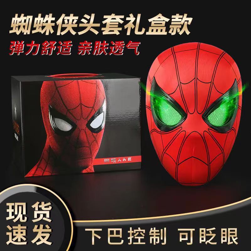 蜘蛛侠头套电动可眨眼发光面具迈尔斯万圣节cos男孩头套礼物玩具