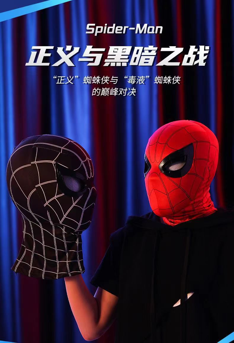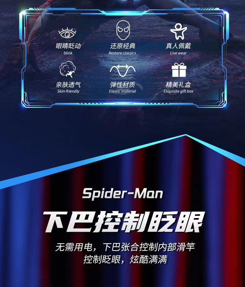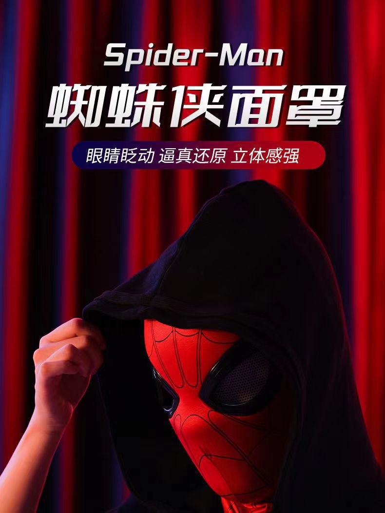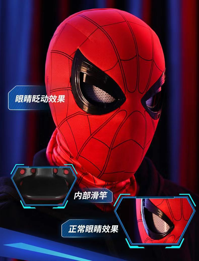蜘蛛侠头套电动可眨眼发光面具迈尔斯万圣节cos男孩头套礼物玩具