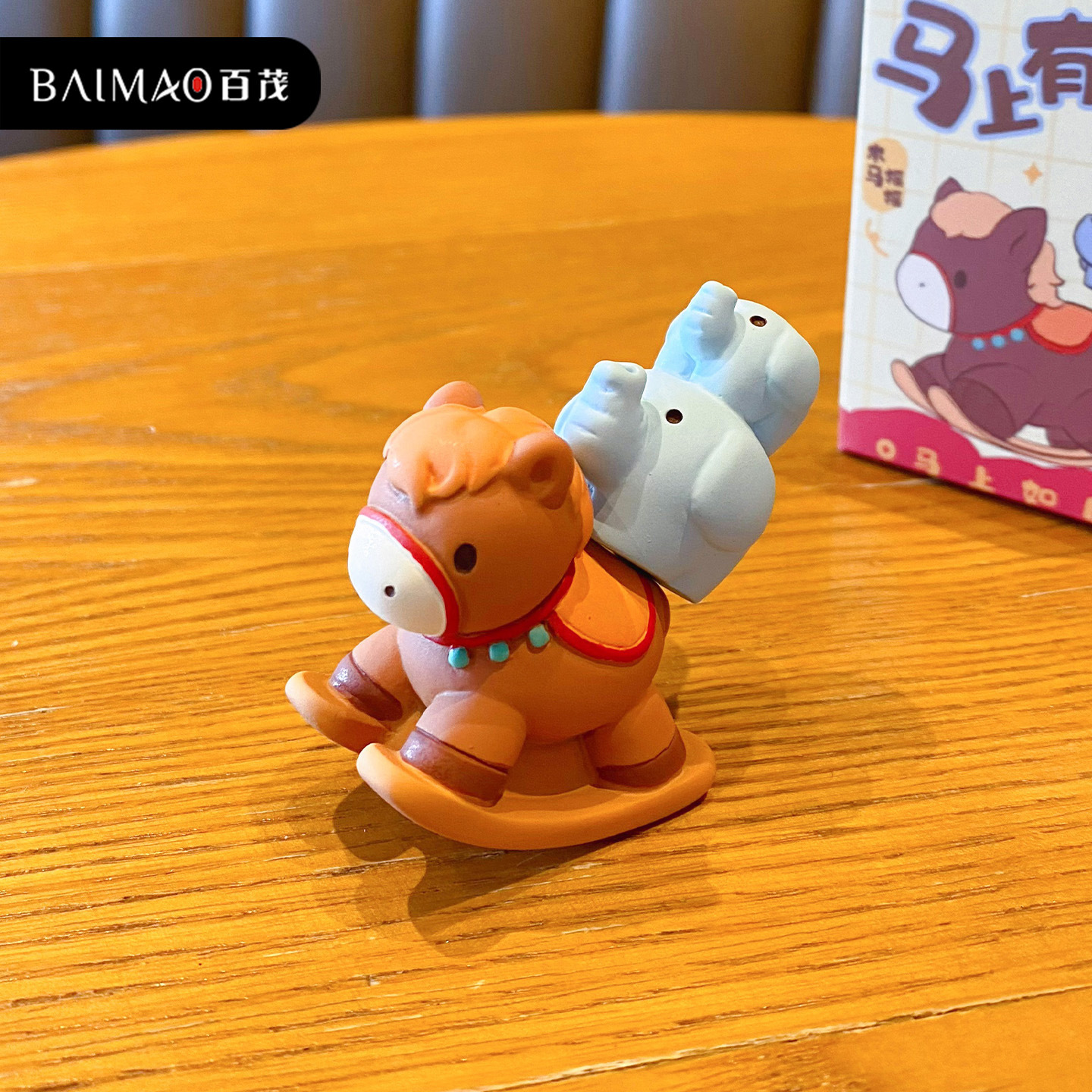 原创马上有钱摆件女国潮树脂磁吸小马公仔小摆件马年生肖摆件礼品