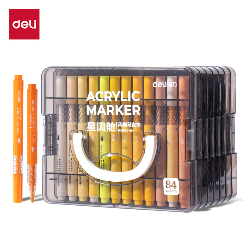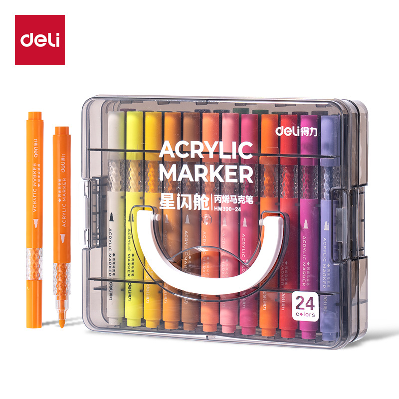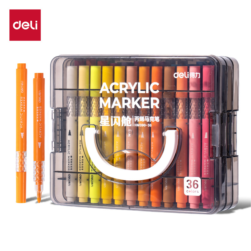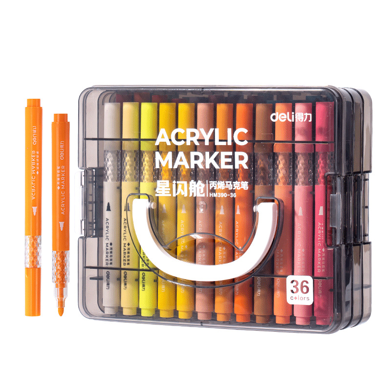 得力HM390圆杆丙烯马克笔星闪舱层叠盒装36色大容量可叠色水彩笔