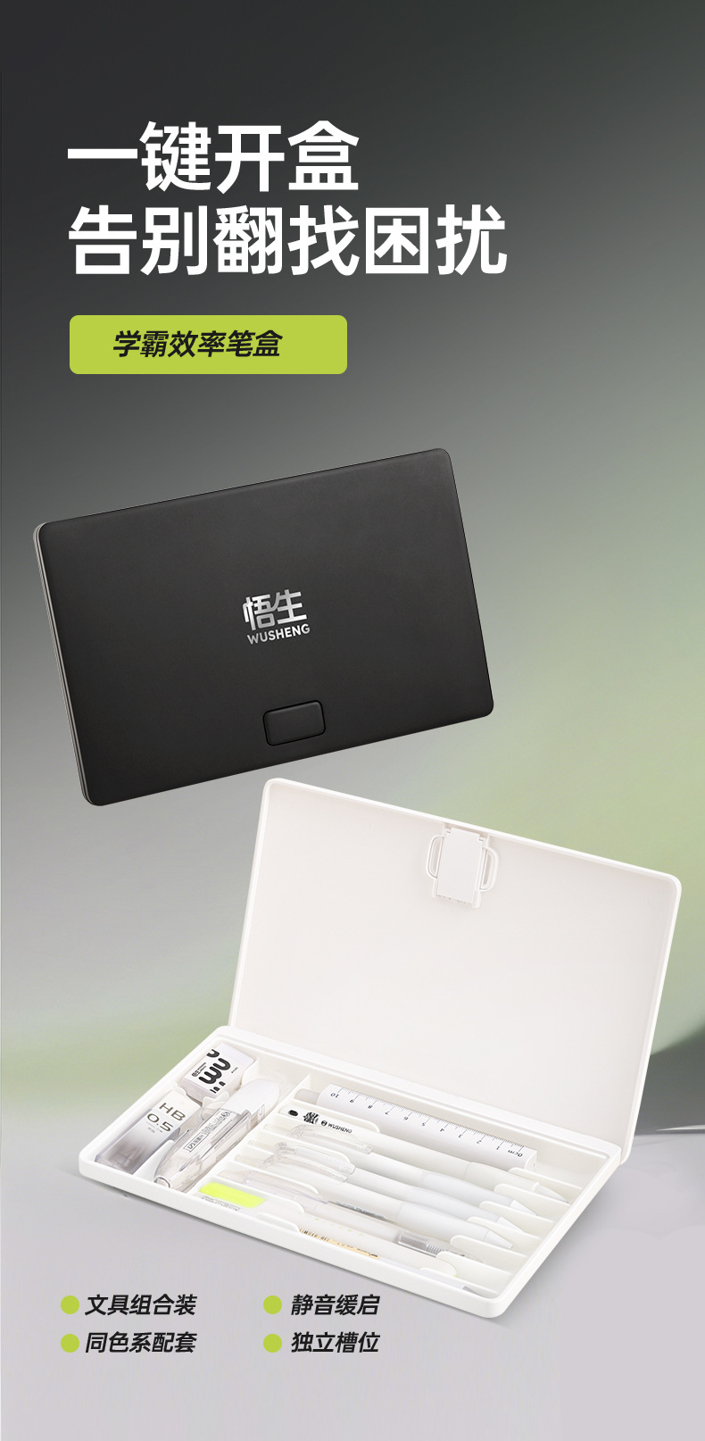 悟生学霸效率文具盒多功能黑科技铅笔盒大容量笔袋学生文具笔盒