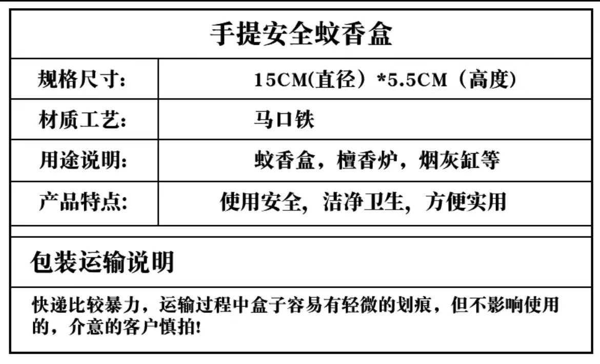 加高带盖蚊香盒带提手防火防踢蚊香盘接灰盘蚊香架便携蚊香托防风