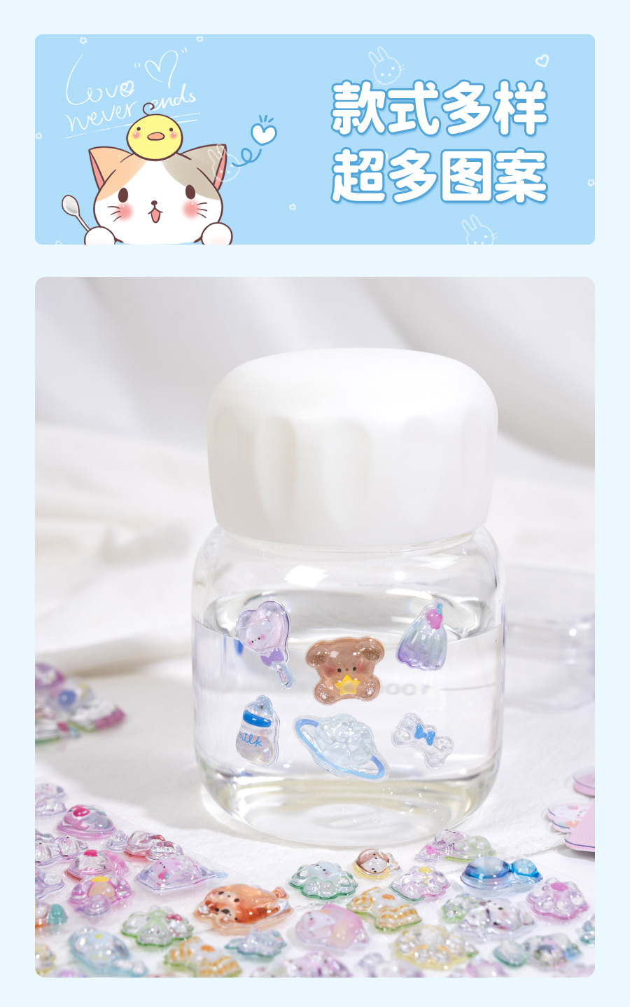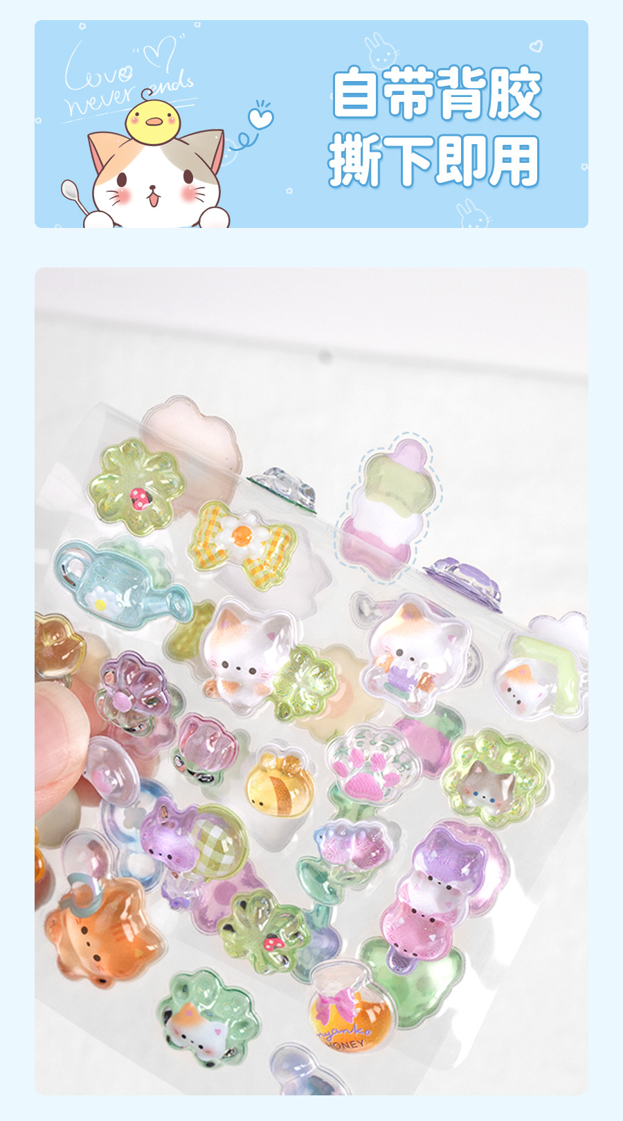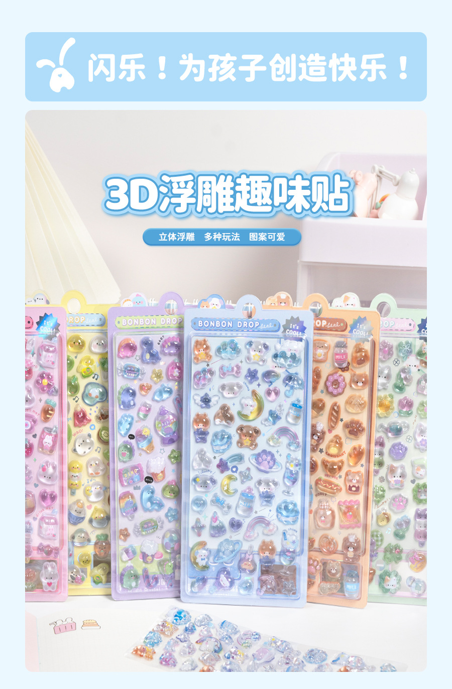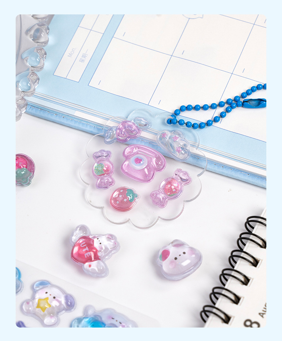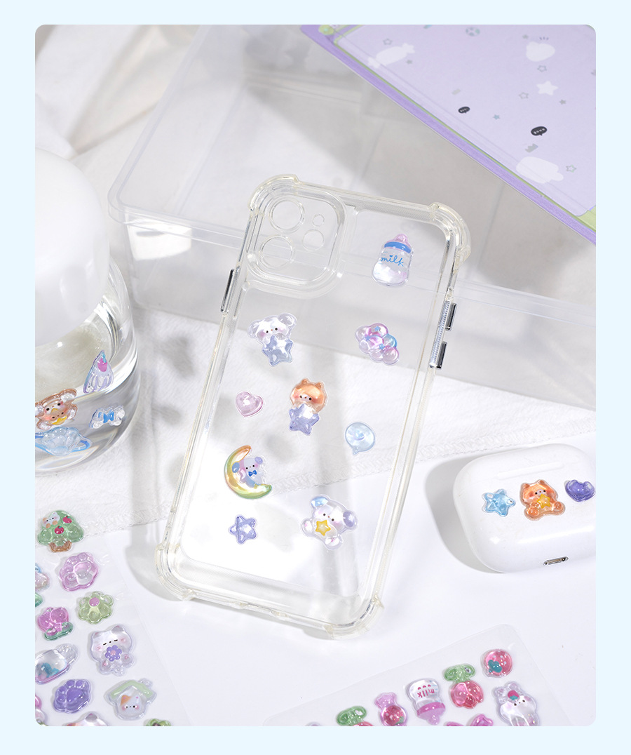 热销闪乐贴画3d立体浮雕贴实心儿童卡通动物水晶手机壳咕卡装饰贴