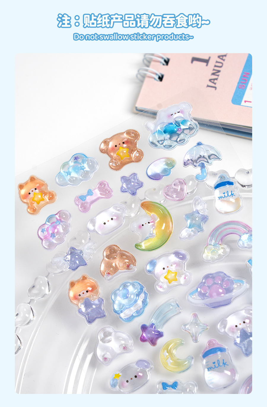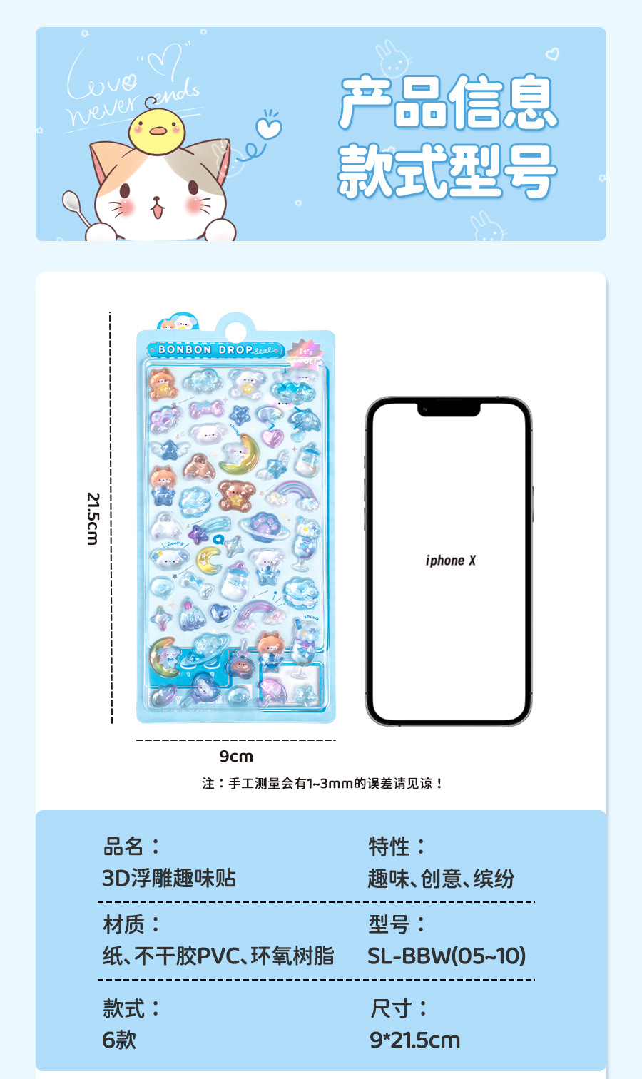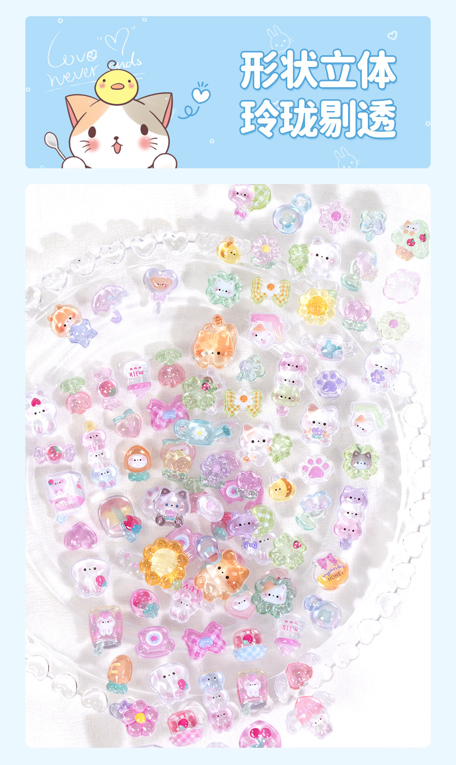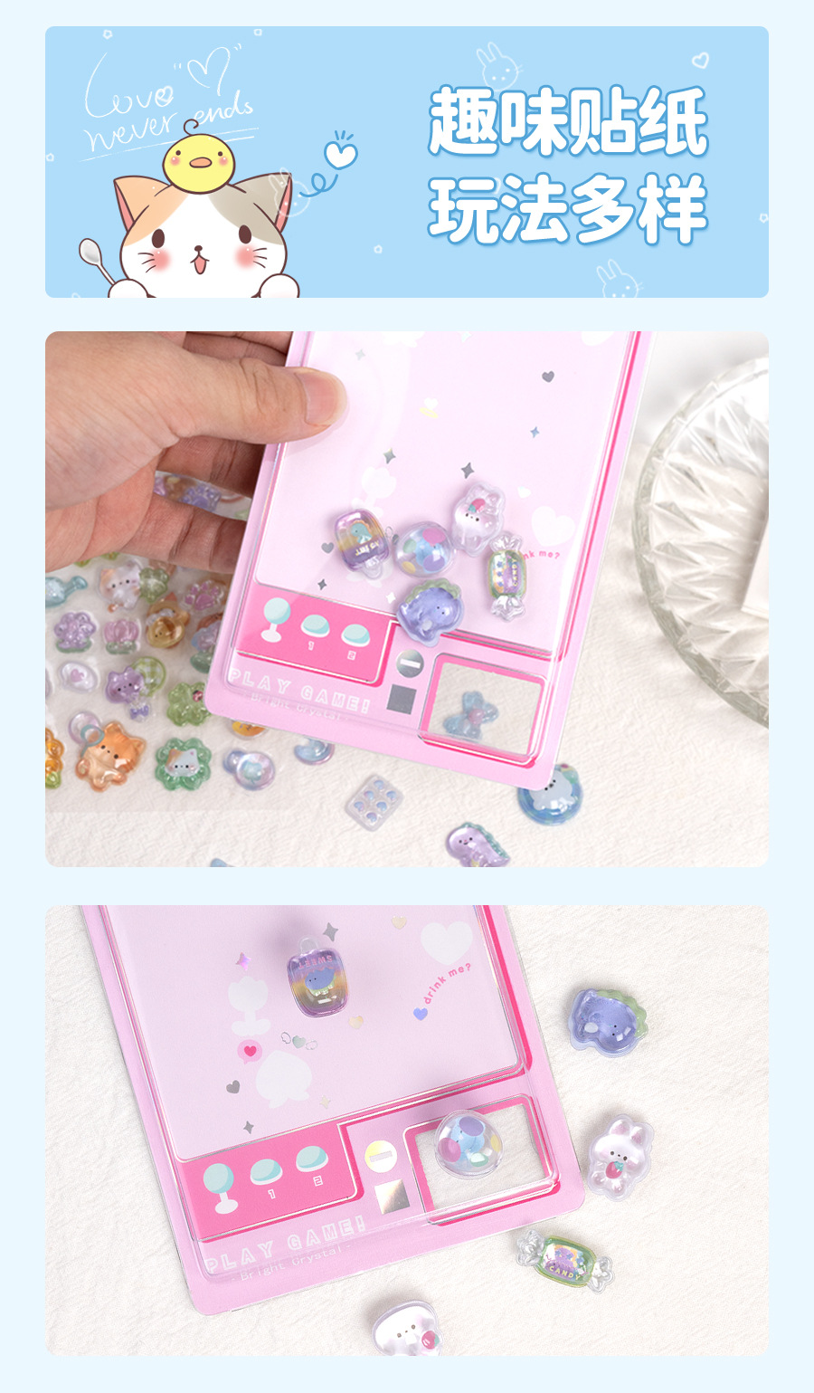 热销闪乐贴画3d立体浮雕贴实心儿童卡通动物水晶手机壳咕卡装饰贴