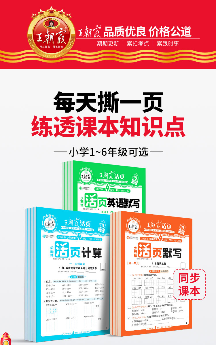 2026春王朝霞活页计算活页默写小学1-6年级下册少而精语数英同步