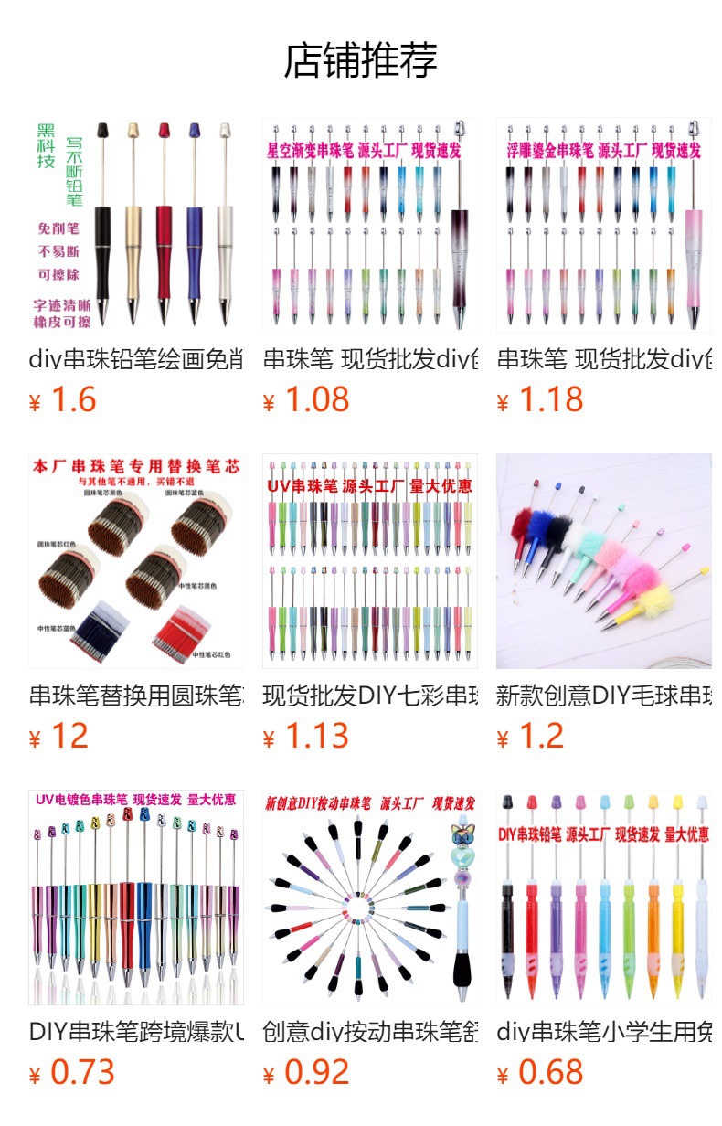 串珠笔现货批发diy创意萌粒串珠圆珠笔UV电镀串珠三色渐变串珠笔