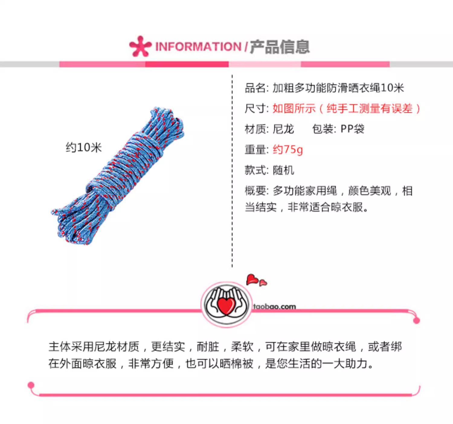 10米加粗尼龙晾衣绳晒被子挂衣晾衣服绳子晒衣挂衣绳凉衣绳子