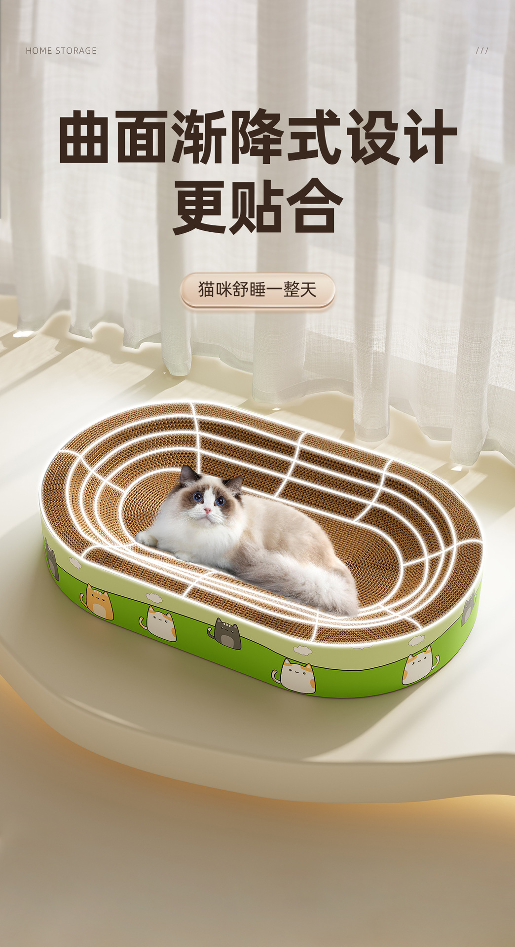 椭圆猫抓板玩具耐磨不掉屑一体猫抓盆抓不烂猫爪板耐抓特大号猫窝