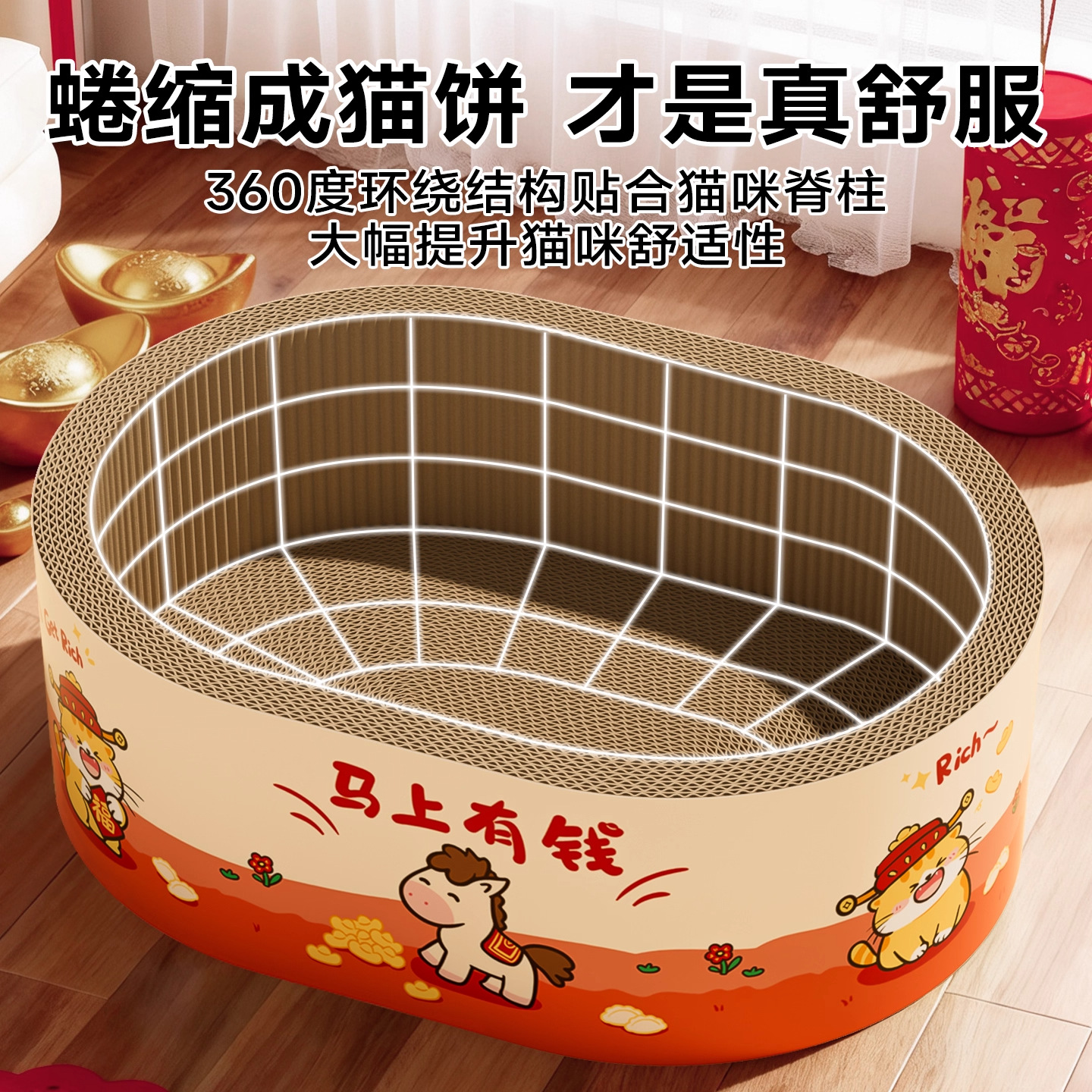 新年超大号猫抓板耐磨不掉屑猫窝一体四季通用瓦楞纸猫咪磨爪抓盆